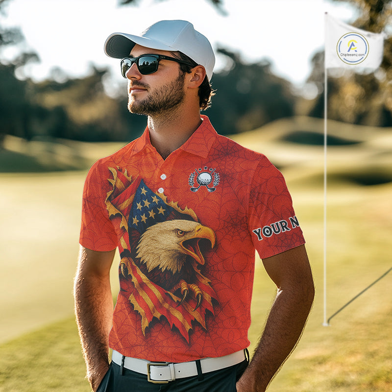 American Flag Eagle Orange spider web Halloween Golf Polo Shirt For Men Custom mens golf outfit NQS10774
