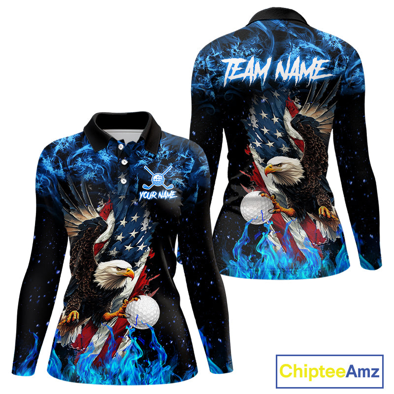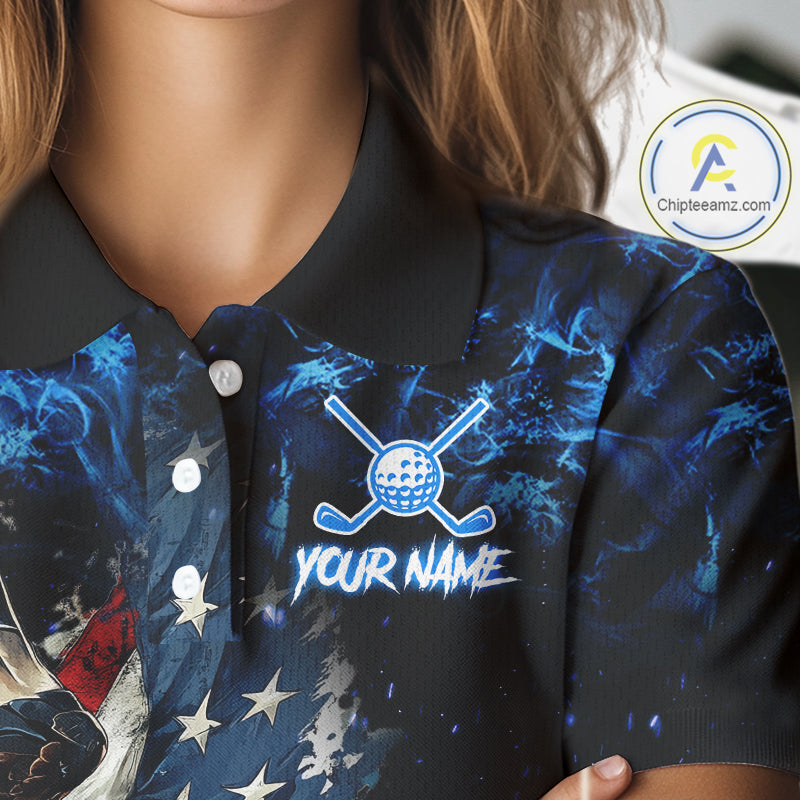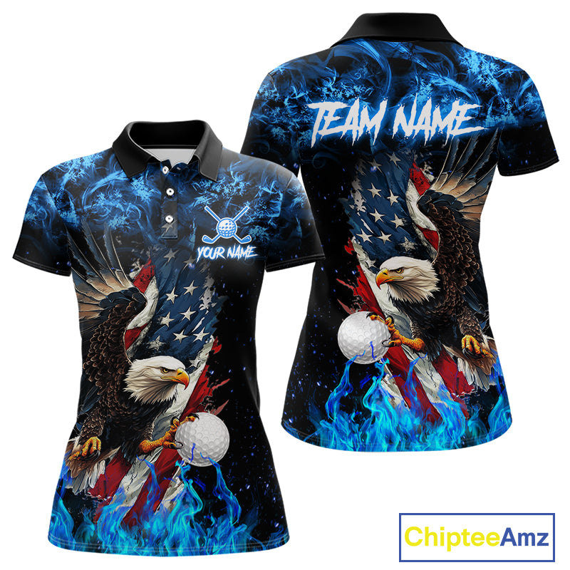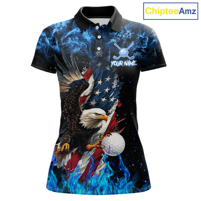 Blue Flame American Flag Eagle golf polo shirts for Women Custom patriotic ladies golf outfit NQS11644