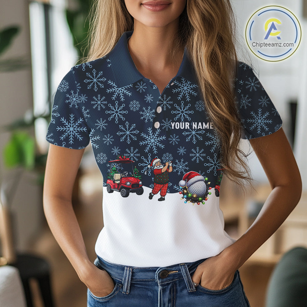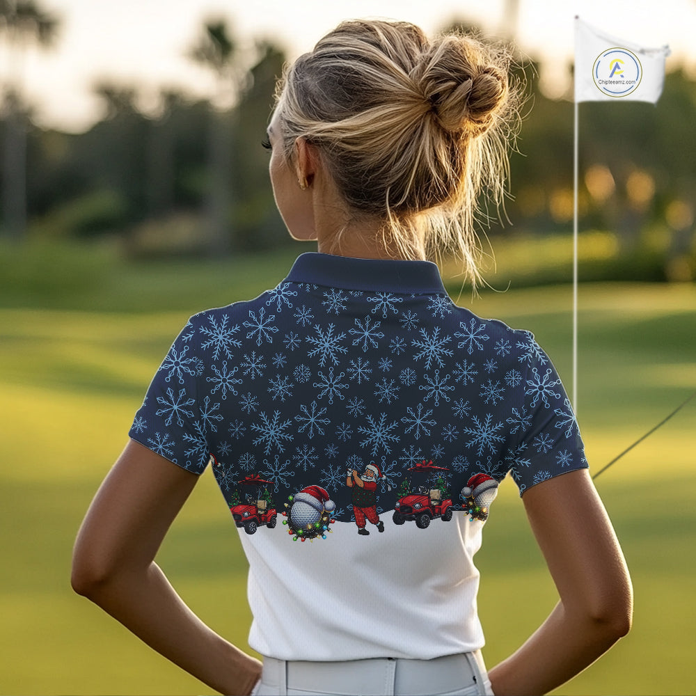 Blue snowflake pattern Christmas Women Golf Polo Shirts custom ladies golf attire, unique golf gifts NQS10865
