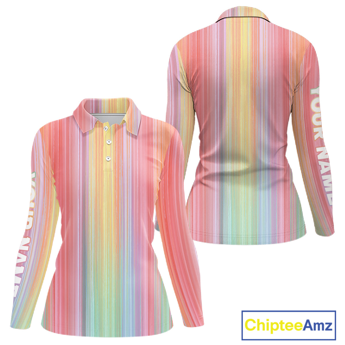 Colorful rainbow stripe pattern Women golf polo shirt custom best golf apparel for ladies NQS10406