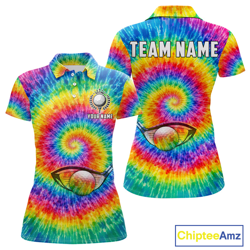 Colorful rainbow tie-dye golf polo shirt for Women custom Ladies golf outfit, personalized golf gifts NQS11724