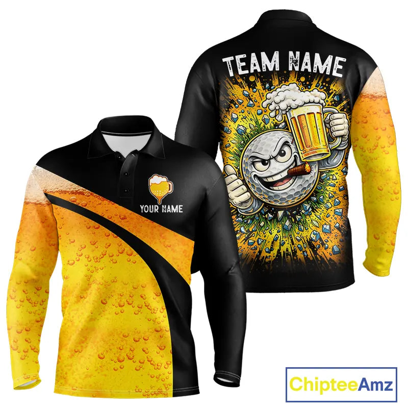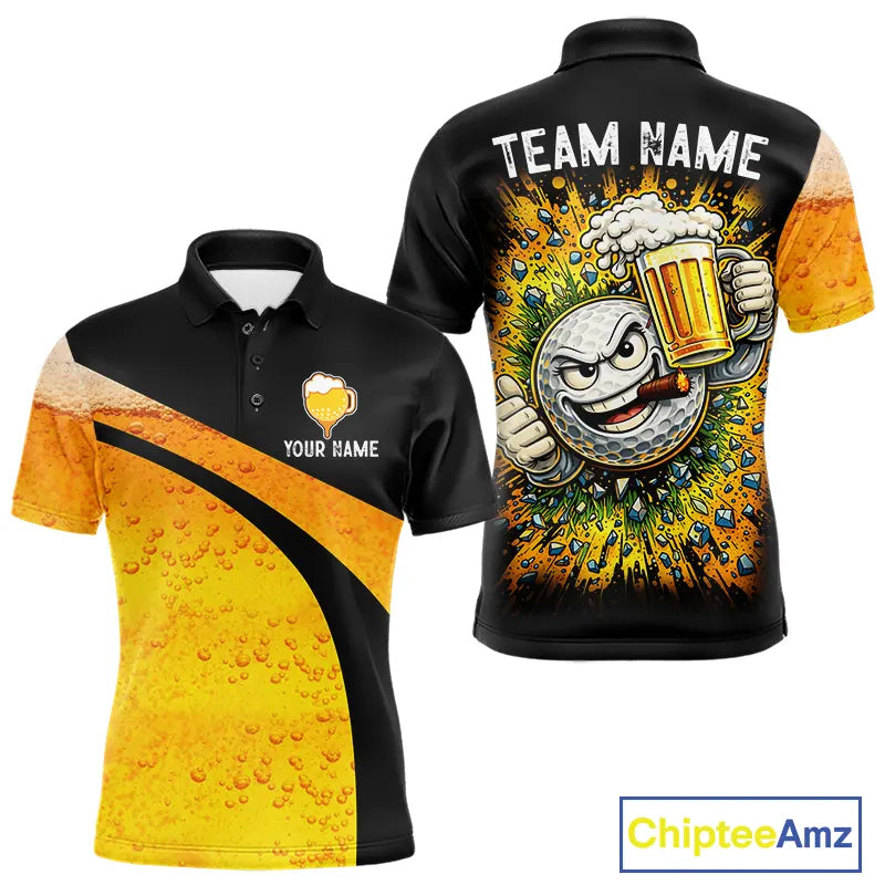 Custom Yellow Funny Beer Golf Polo Shirts For Men, golf outfits for men, Personalized golf gifts NQS11647