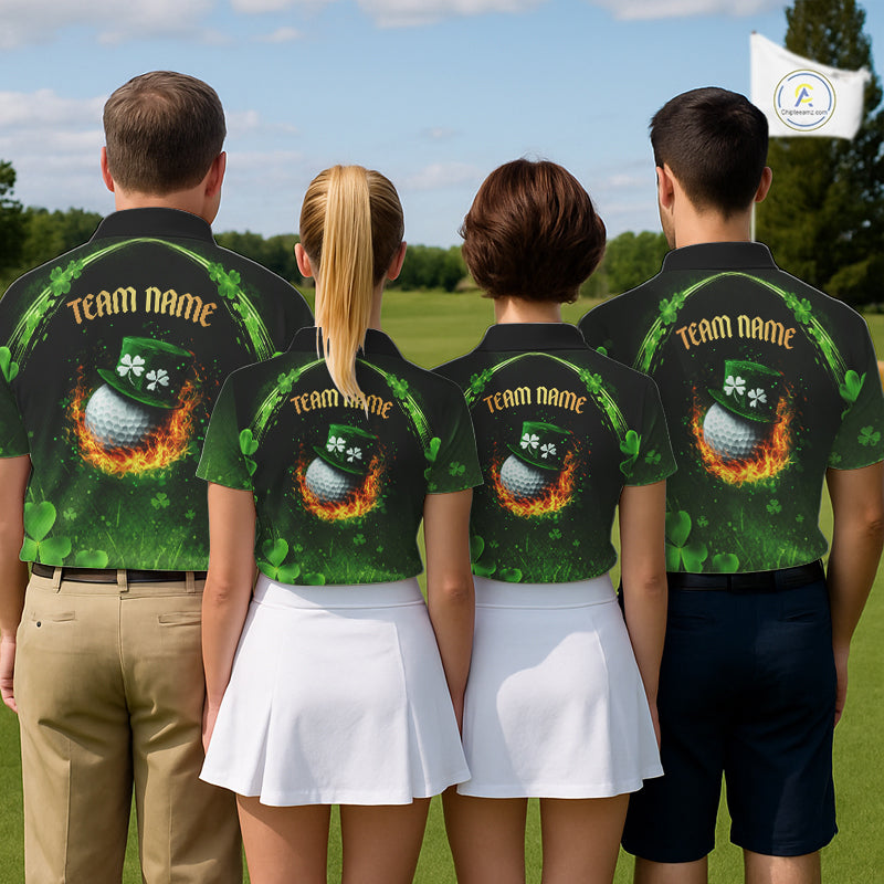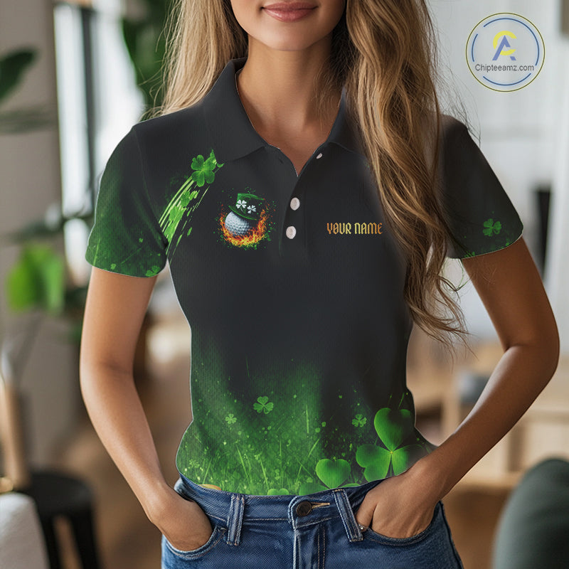 Flame golf ball green shamrock St Patrick's Day Women Golf Polo Shirt Custom lucky ladies golf attire NQS11413