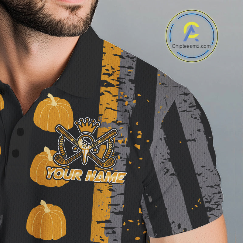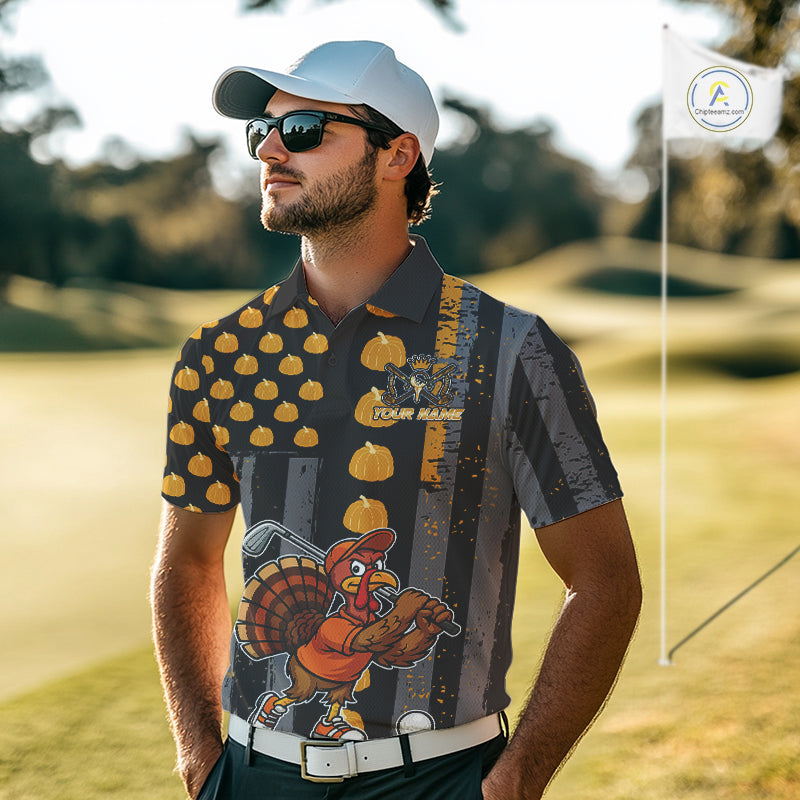 Funny Golf Polo Shirts For Men Custom Pumpkin American Flag Turkey Thanksgiving golf shirt NQS10944