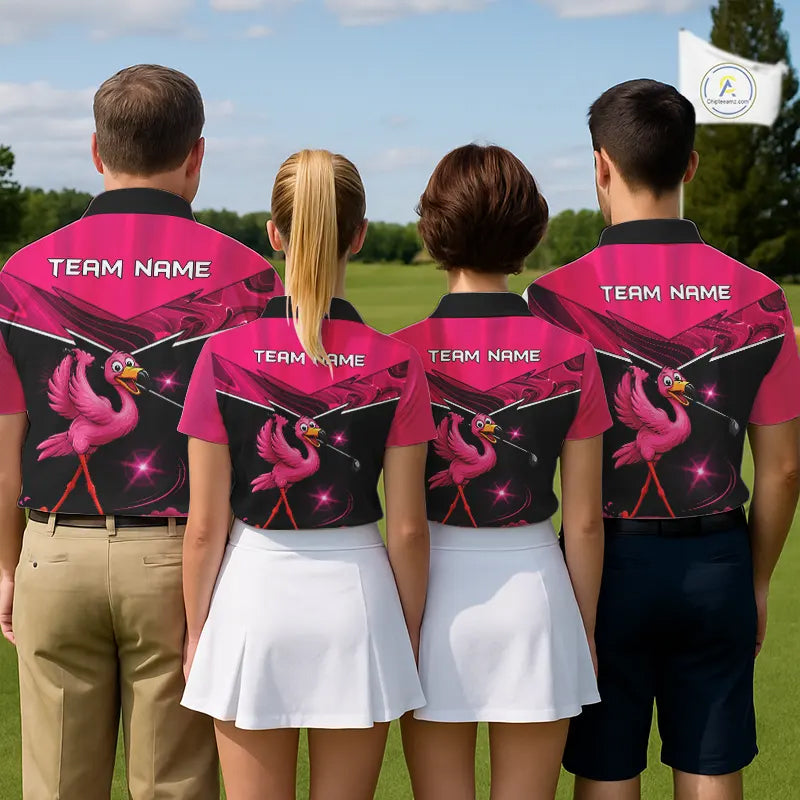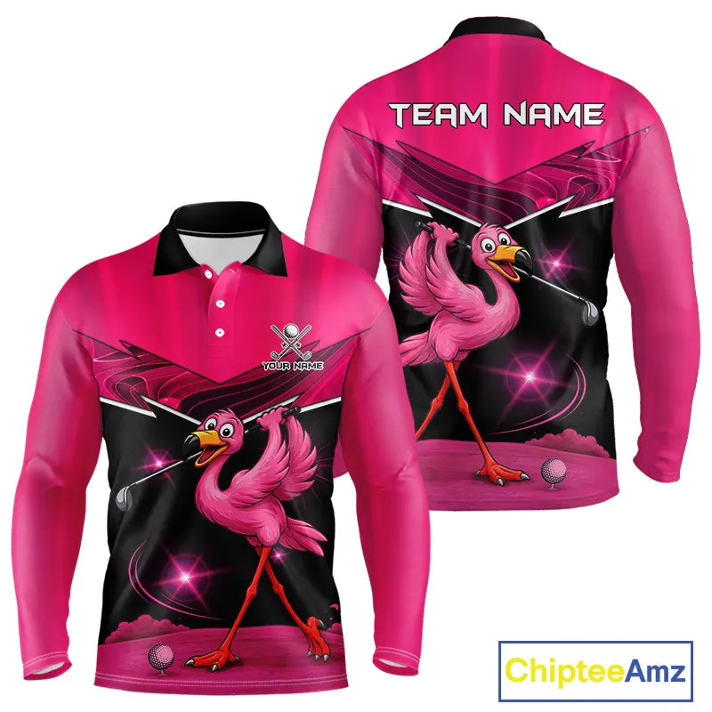 Funny Pink Flamingo Golf Polo Shirts For Men Custom Flamingo Team mens golf tops, funny golf gifts NQS11656