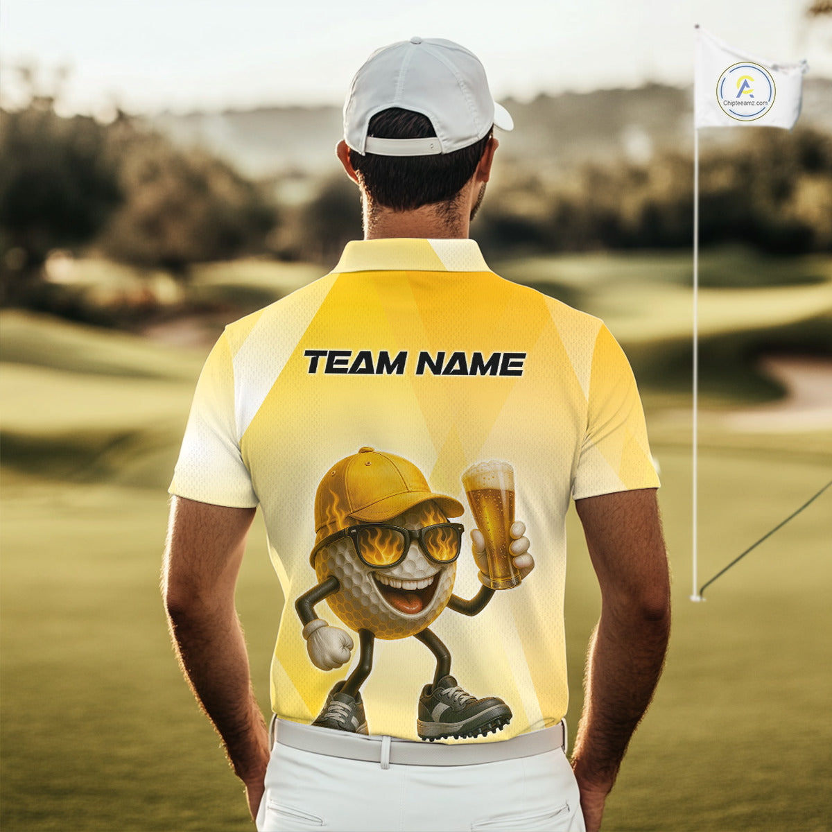 Funny Yellow pattern Golf ball drinking beer Mens Golf Polo Shirt Custom team golf outfits for mens NQS10718