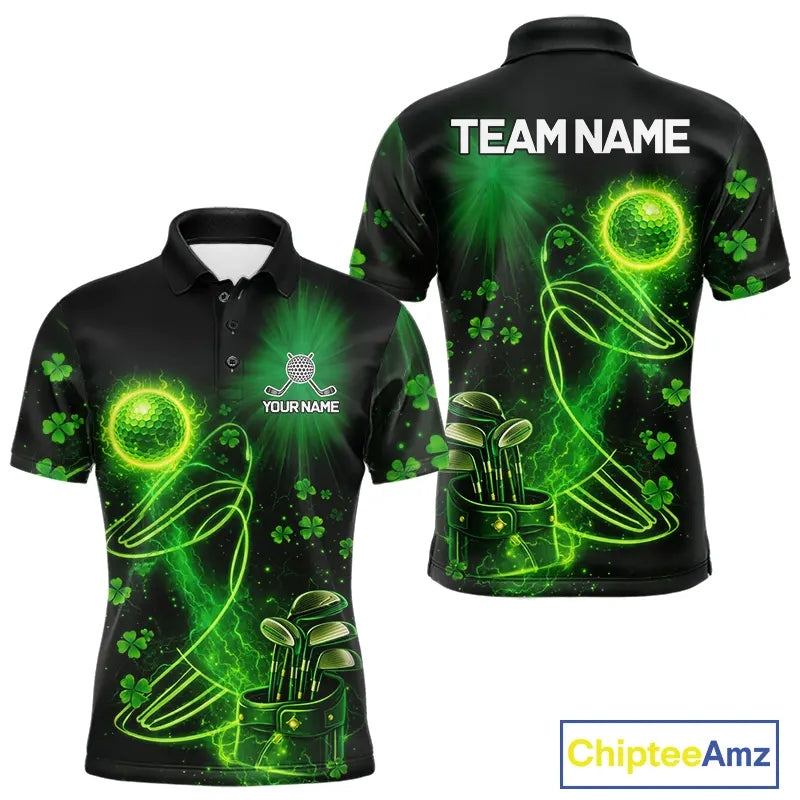 Green shamrock lightning thunder St Patrick's Day custom matching golf polo shirts for couples NQS11415