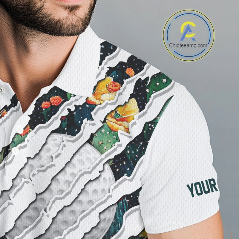 Cactus Pattern Golf Polo Shirt For Men Custom Cactus Golf Team Shirt, Golfer Gifts NYN2855