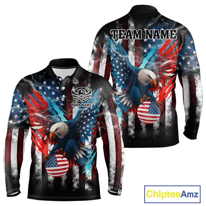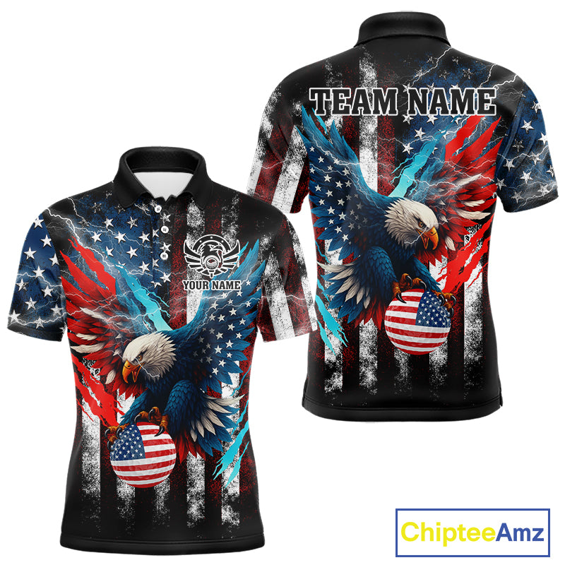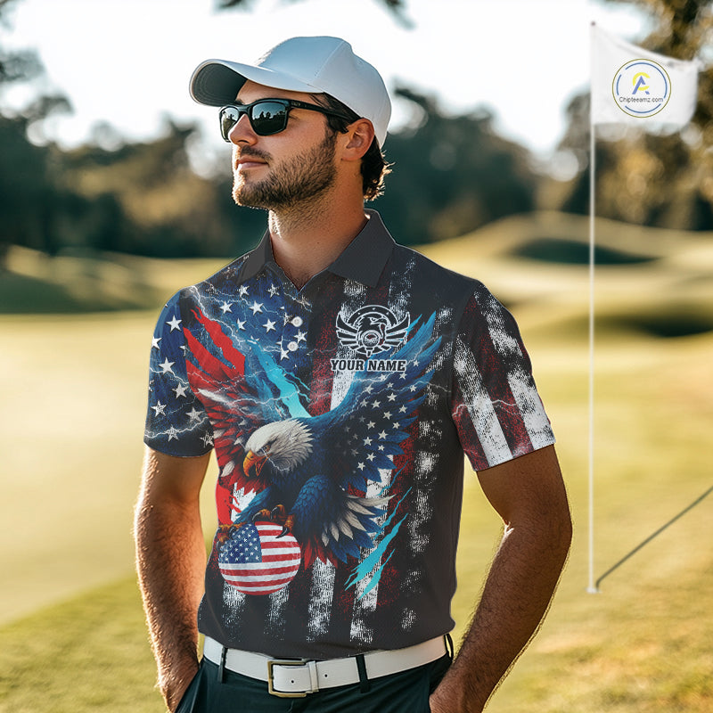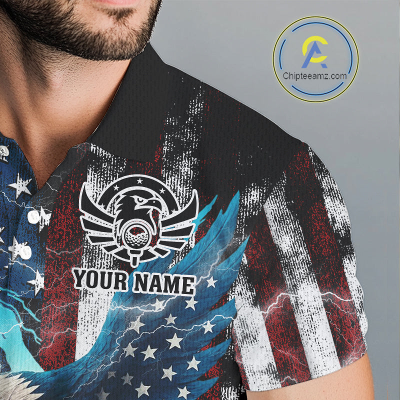 Personalized American Flag Eagle Lightning Thunder Golf Polo Shirts For Men, Patriotic Golfing Gifts NQS11717