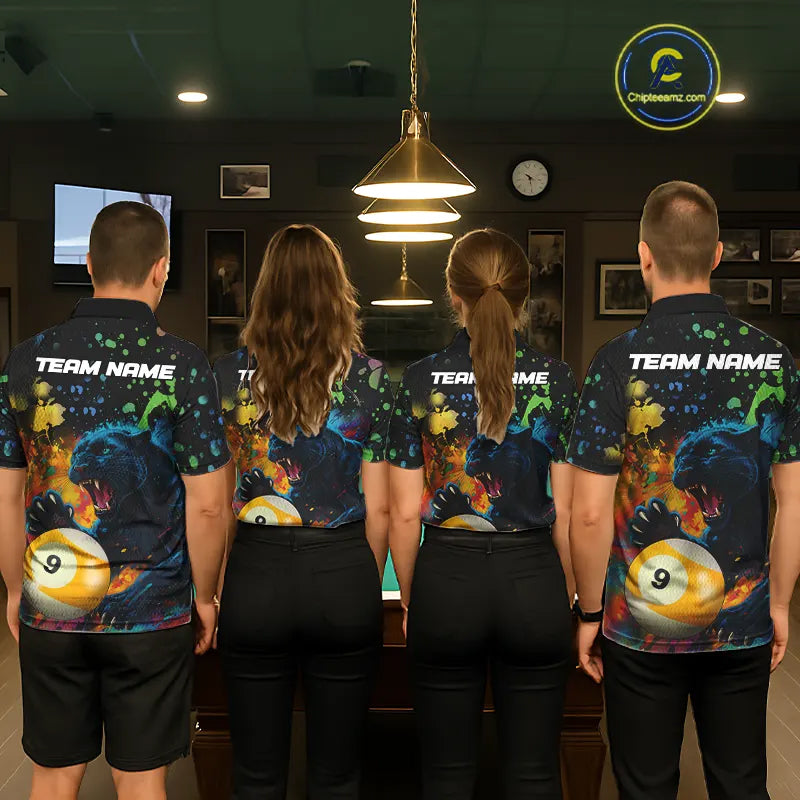 Colorful Splash Panther 8 Ball & 9 Ball Billiard Shirt For Men Custom Funny Pool Team Jersey TDM5381