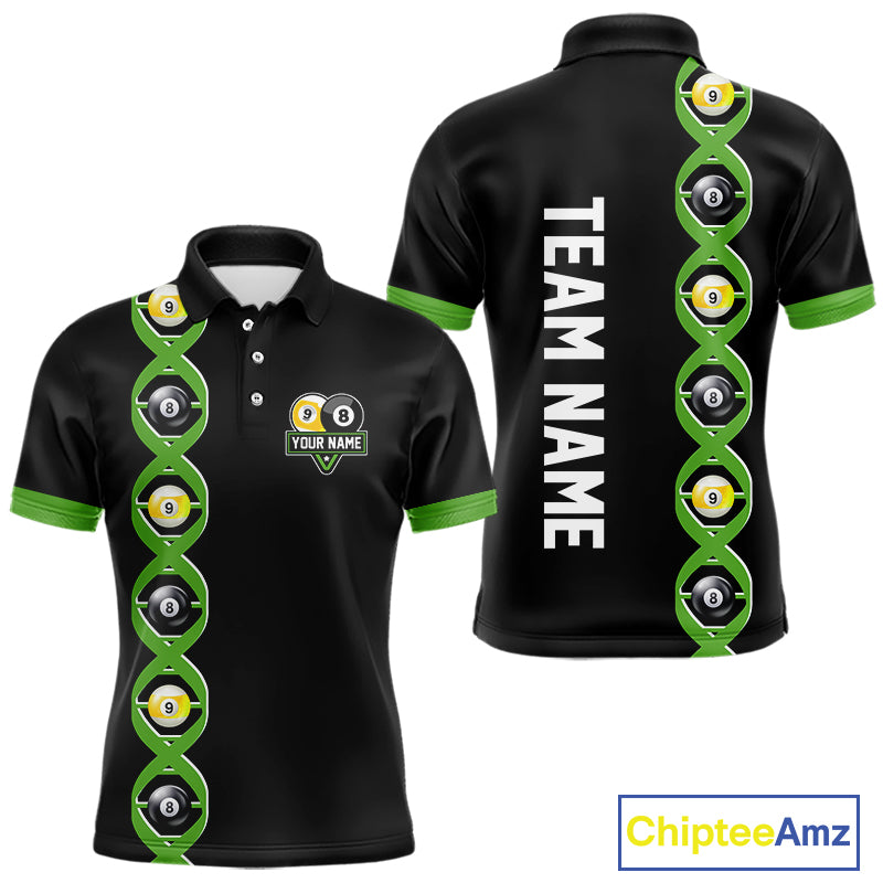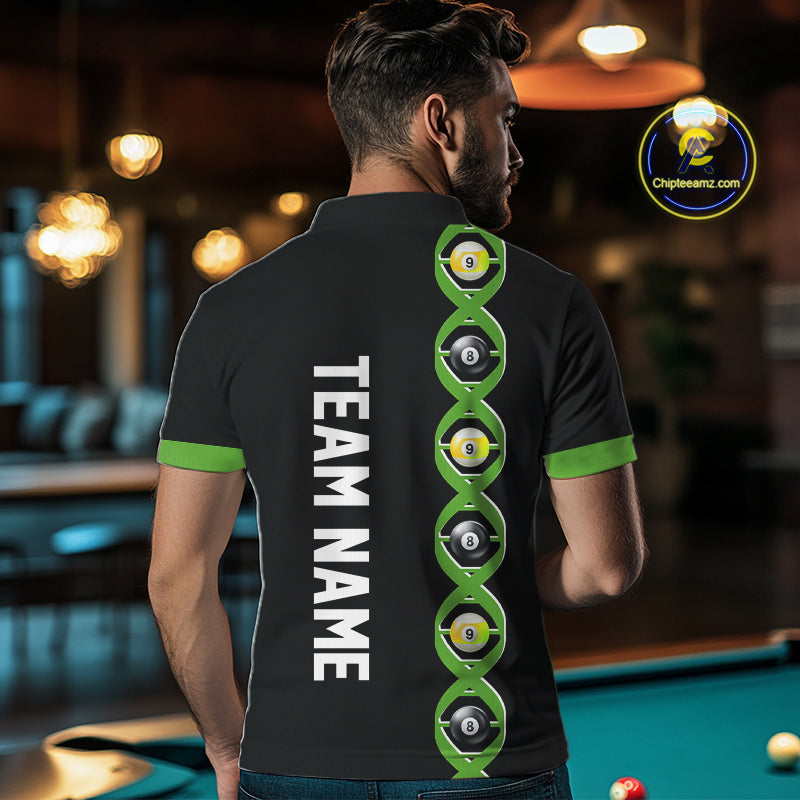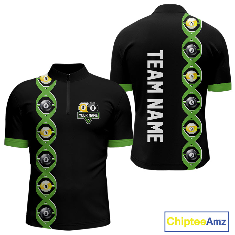 DNA Billiard 8 Ball & 9 Ball Shirts For Men Custom Funny Pool Jerseys Team Polo & 1/4 Zip |Green TDM5520
