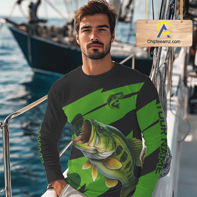 Black and Green Largemouth Bass fishing UV Protection shirts custom name Bass fishing jerseys NQS10394