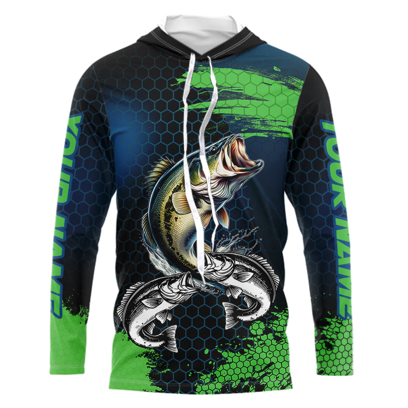Blue and Green Camo Largemouth Bass fishing custom Bass fishing jerseys, personalized fishing gifts NQS9218