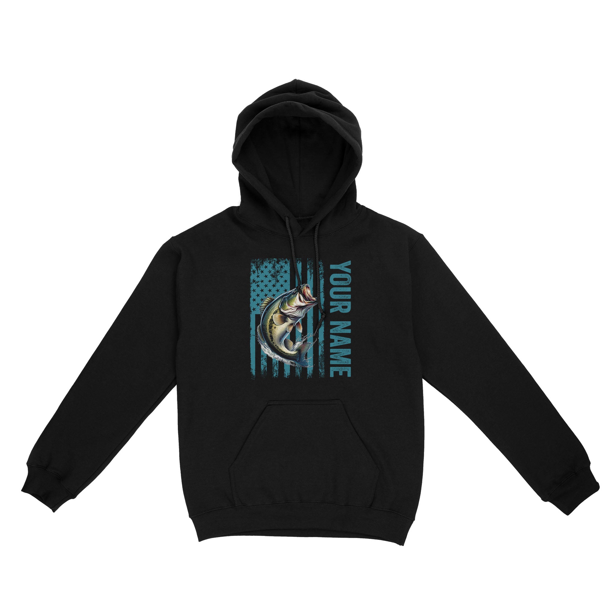 Blue American Flag Largemouth Bass Fishing Custom Name Bass Fishing Hoodie, Gift for Fisherman D03 NQS9908