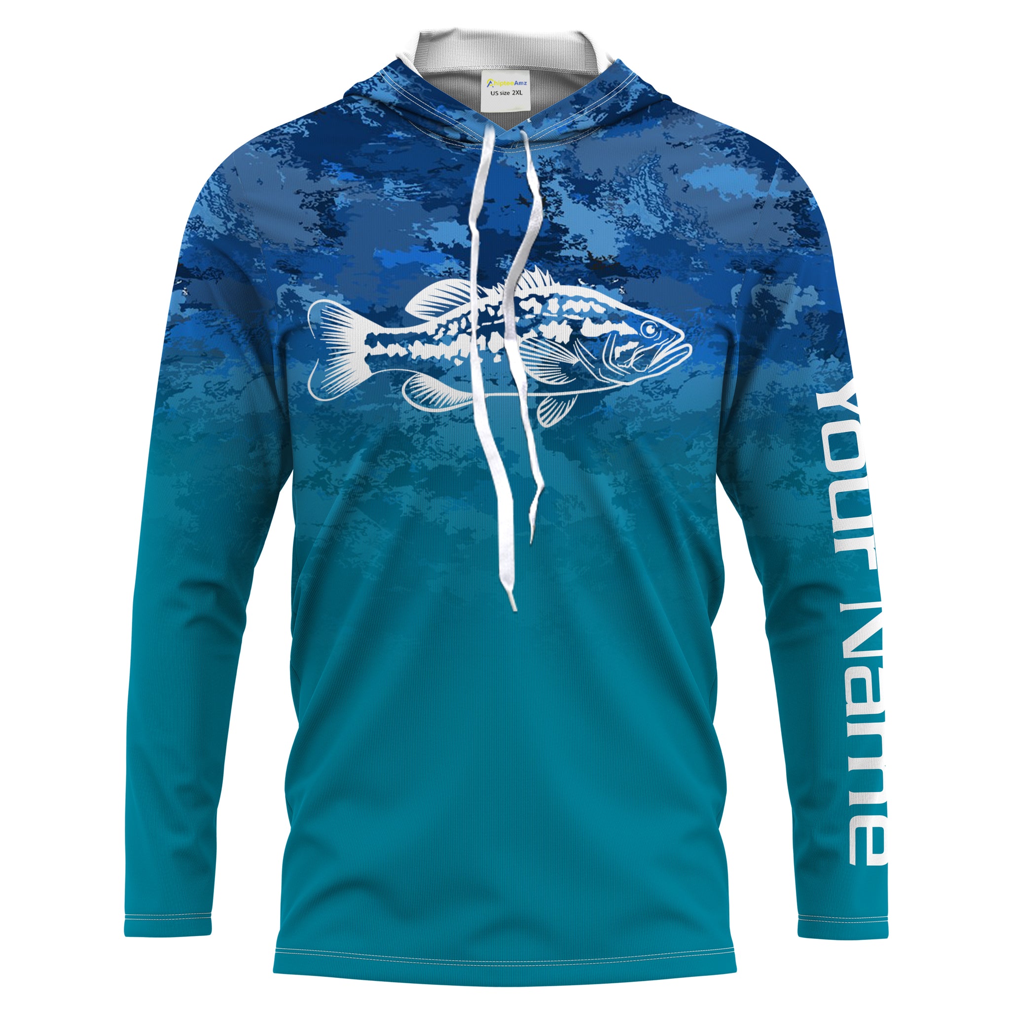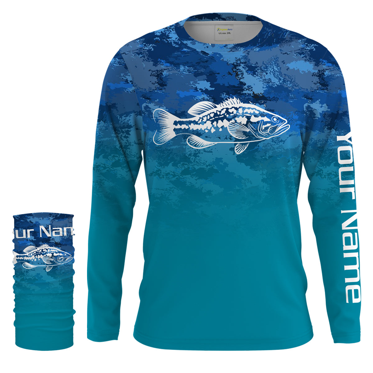 Largemouth Bass fishing blue camo ocean Customize Name UV Long Sleeve Fishing Shirts UPF 30+ NQS2183