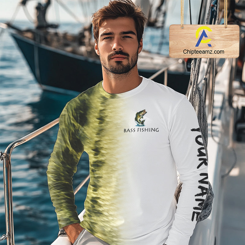 Personalized Green Scales Performance Bass Fishing Shirts, custom Bass fishing tournament jerseys NQS10238