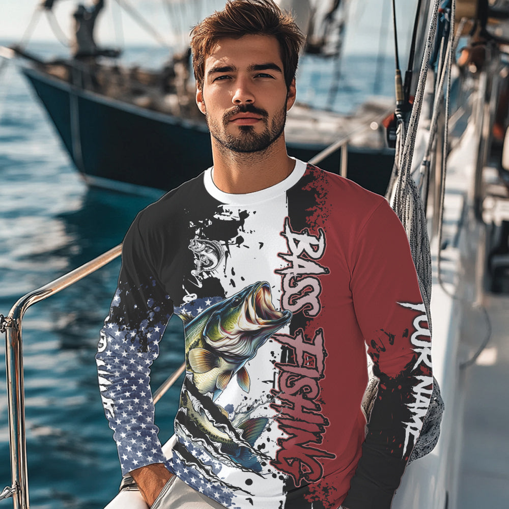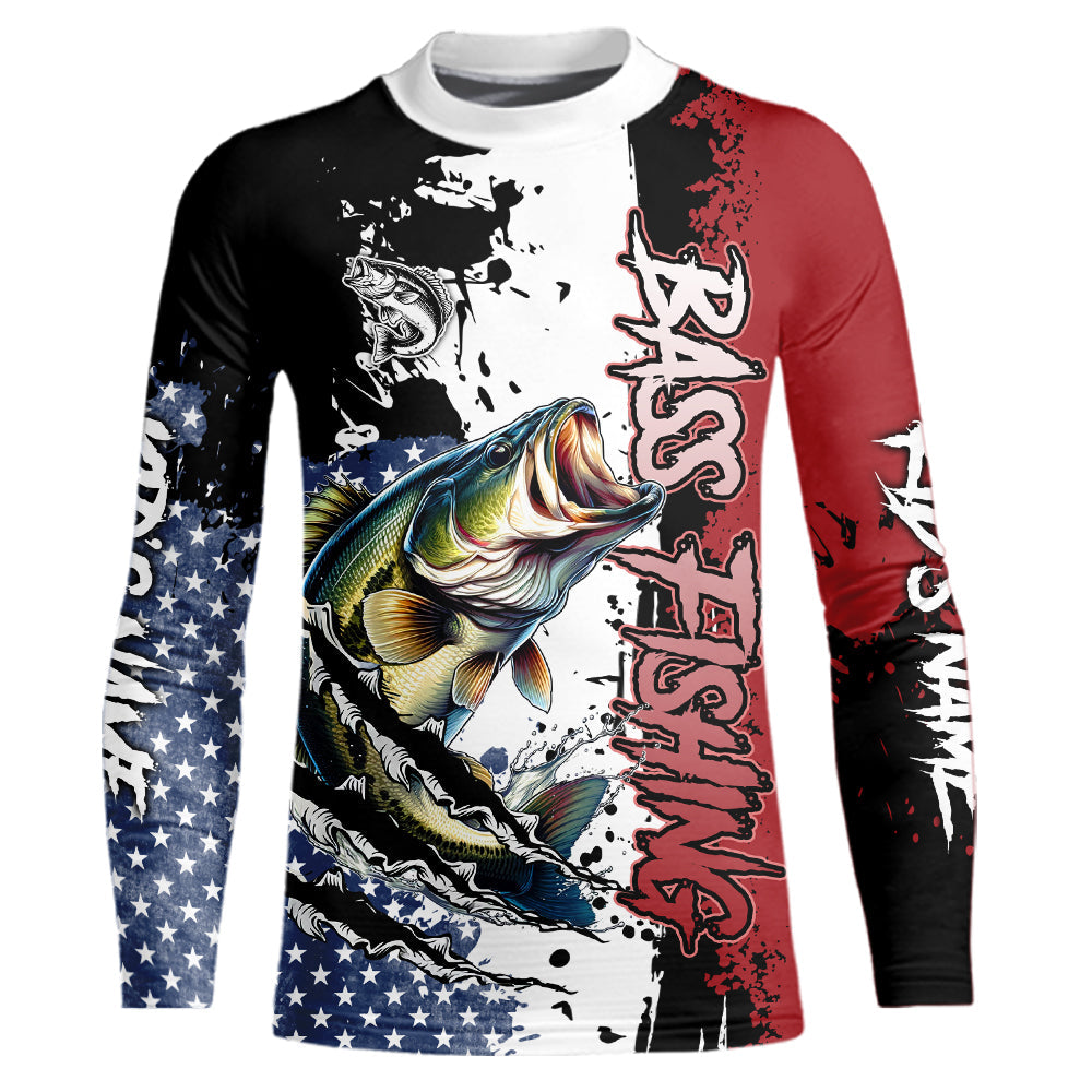 Red, white and blue Largemouth Bass fishing American Flag Custom patriotic Bass fishing shirts NQS9530