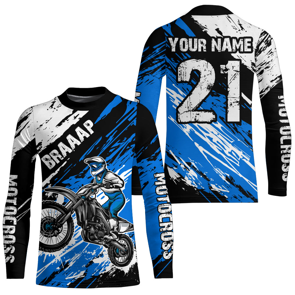 Adult&Kid blue custom dirt bike jersey Motocross jersey mens women braaap motocross shirt| CTP07