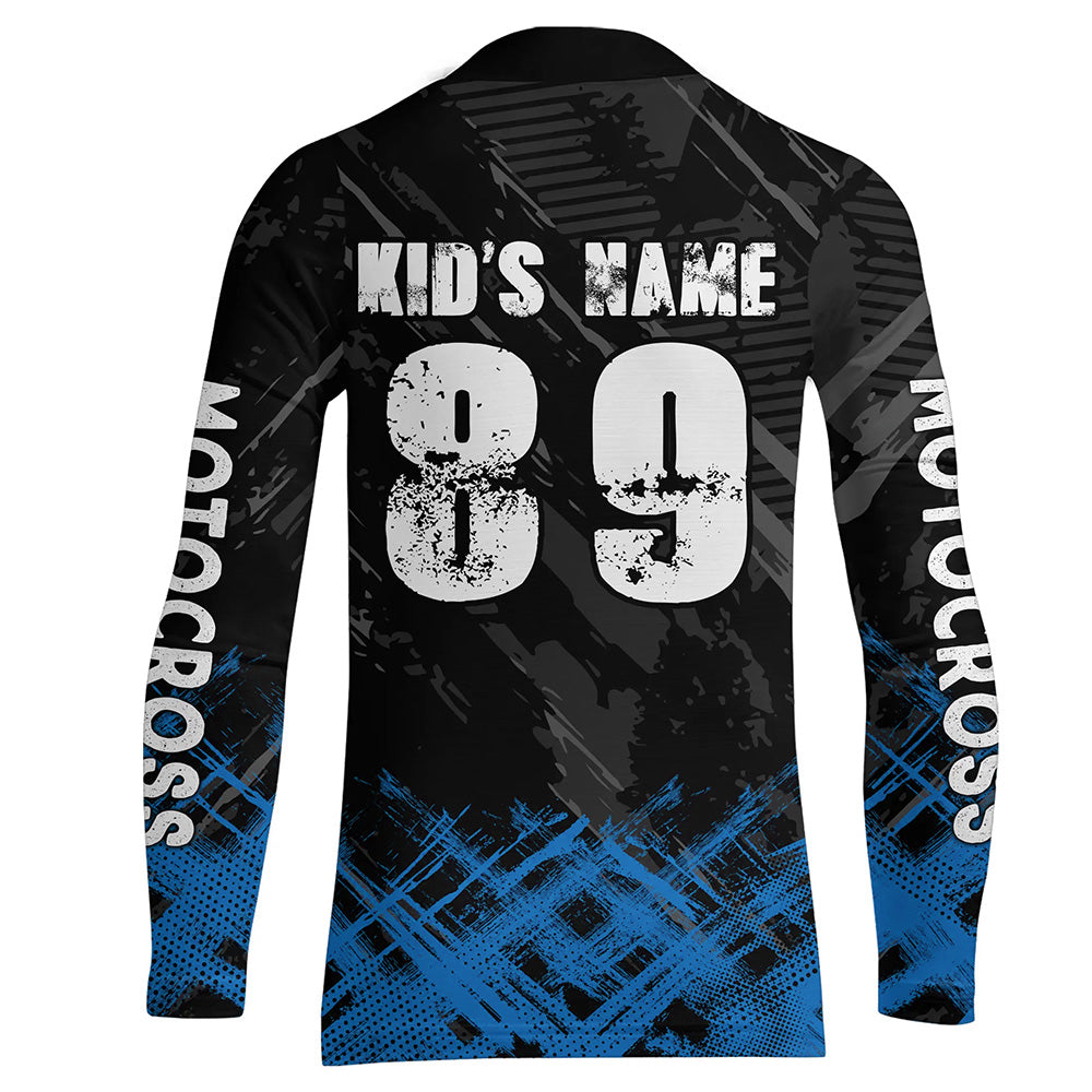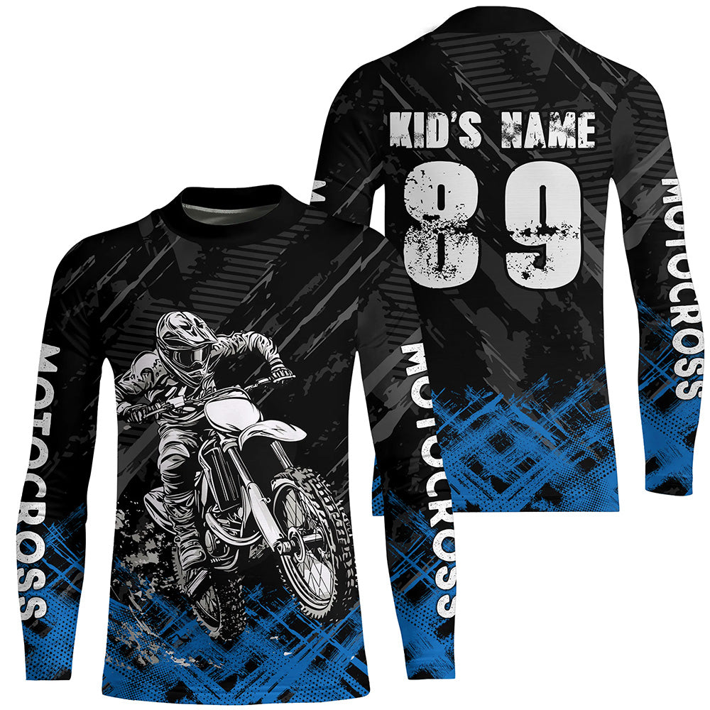 Adult&Kid Blue Custom Dirt Bike Jersey Motocross Jersey Upf30+ Motocross Shirt| CTP87