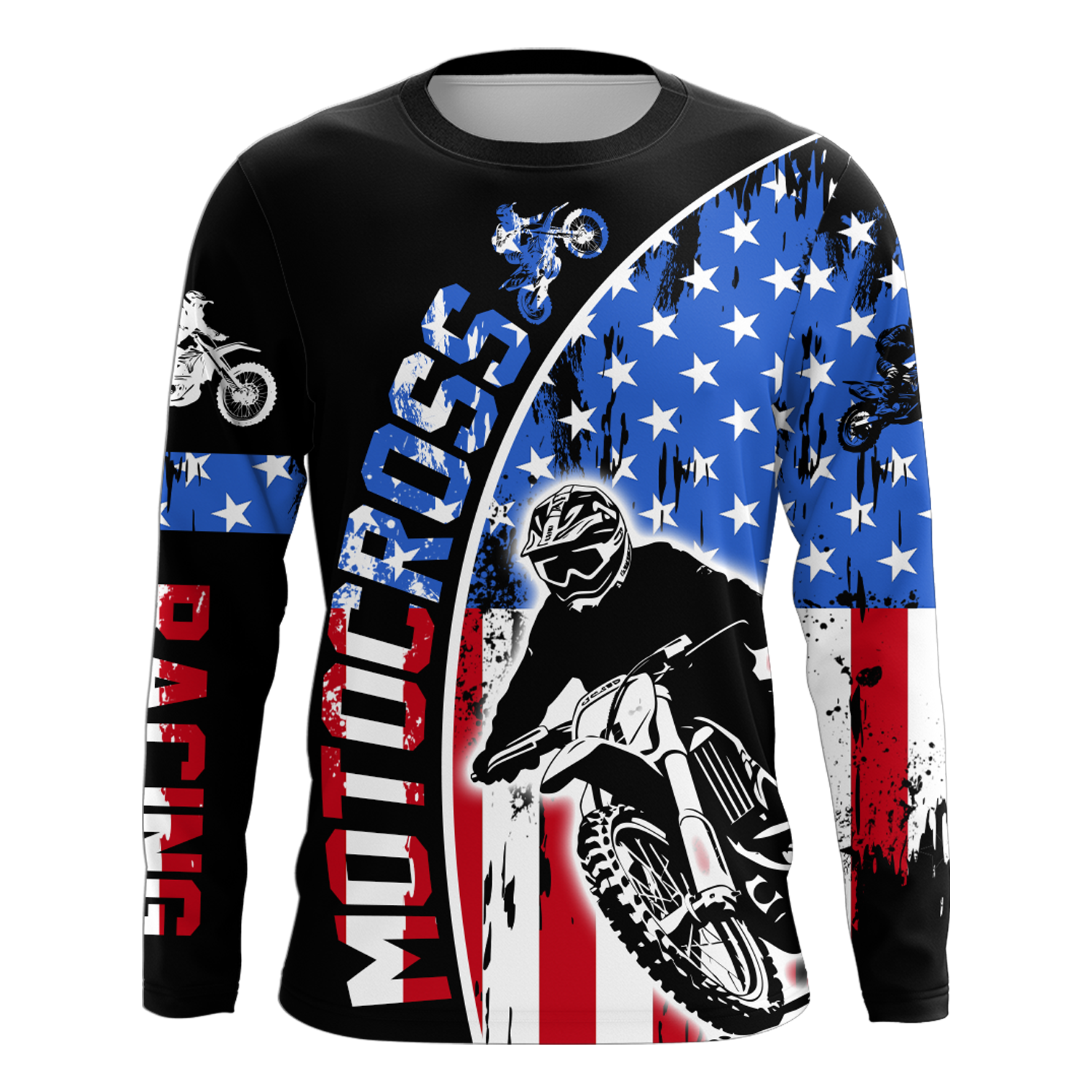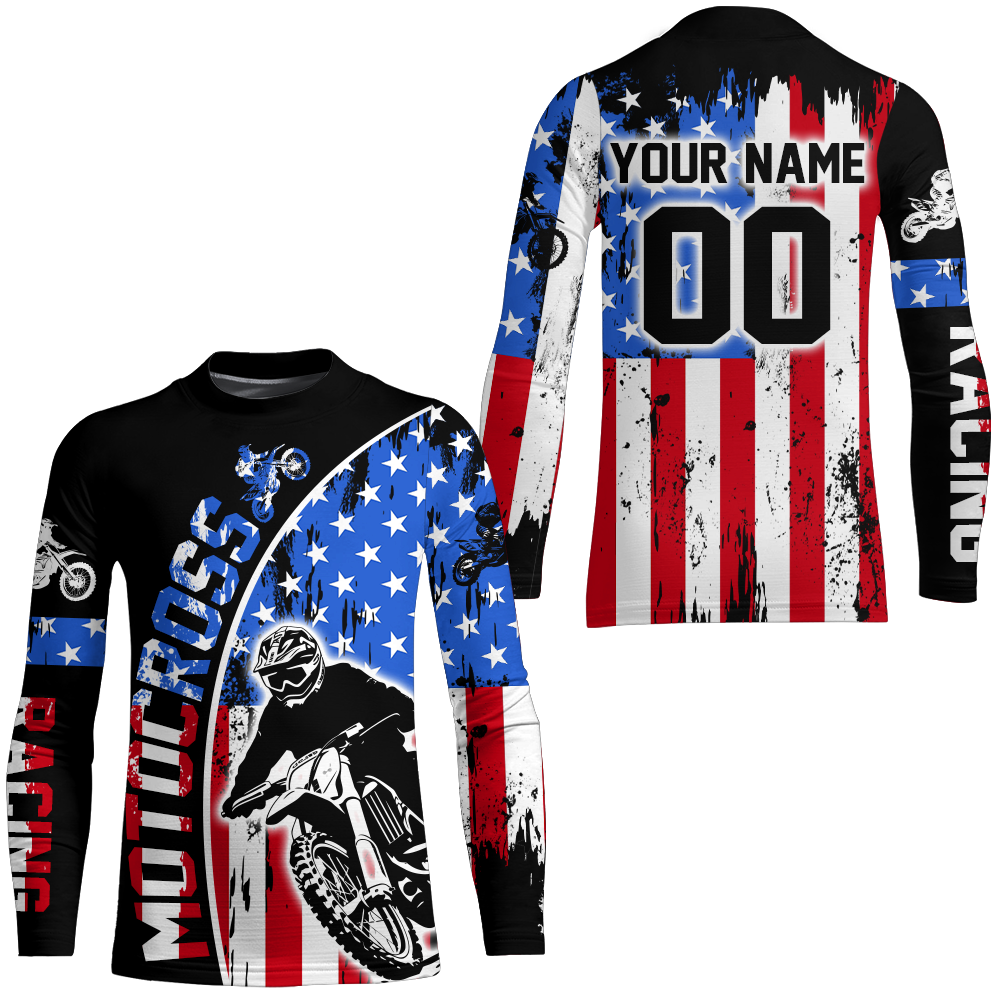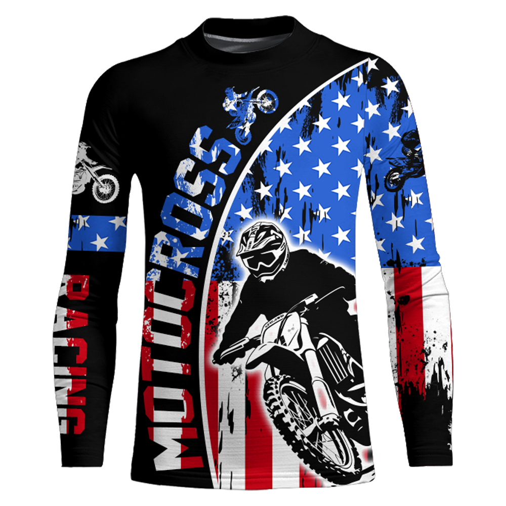 Adult&Kid Custom American Flag Dirt Bike Jersey Motocross Jersey Upf30+ Motocross Shirt| CTP77