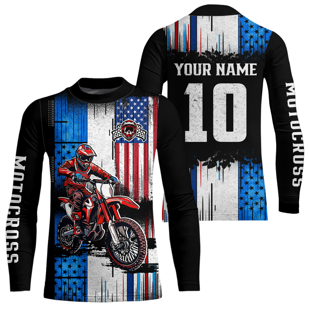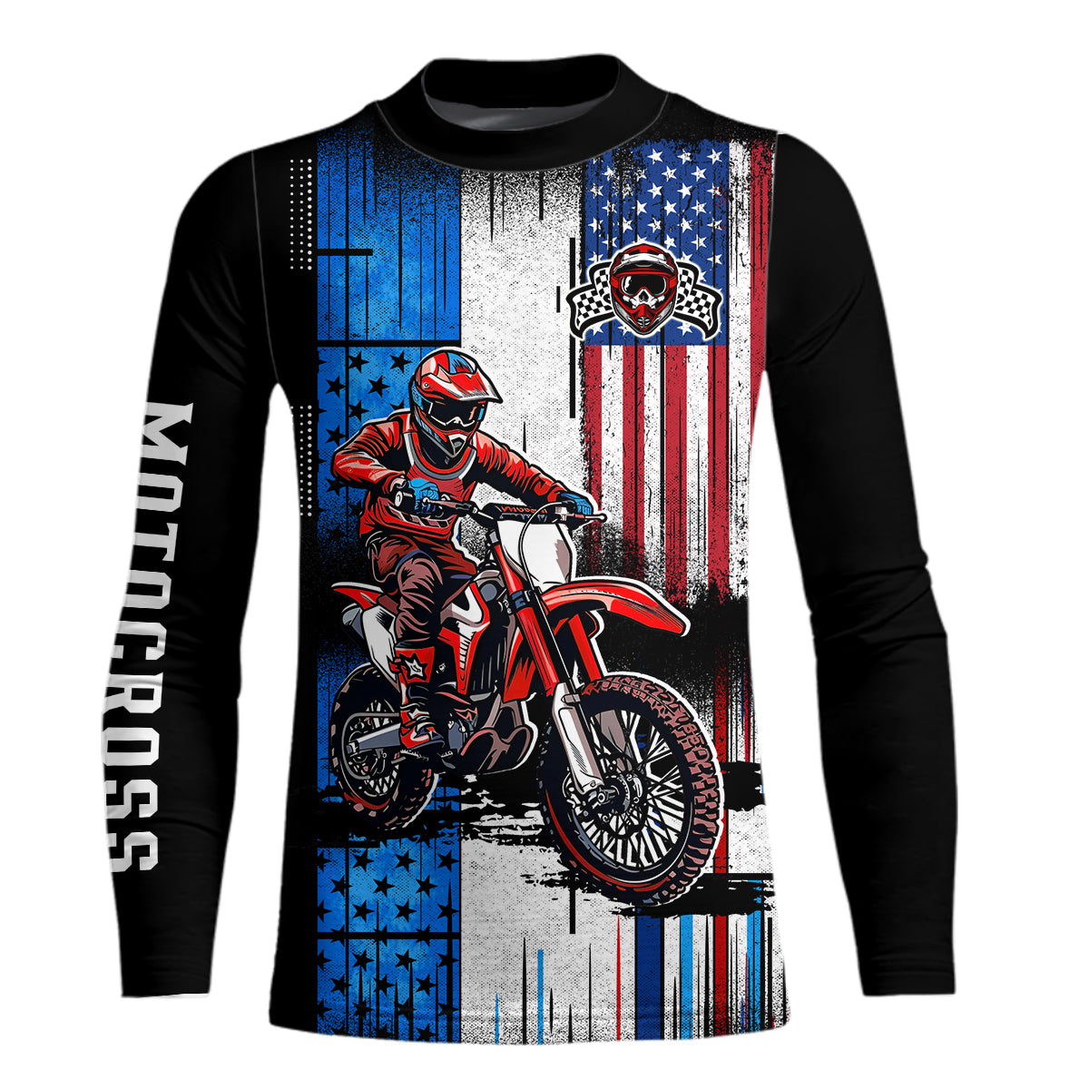 Adult&Kid Custom American Flag Dirt Bike Jersey Motocross Jersey Upf30+ Motocross Shirt| CTP94