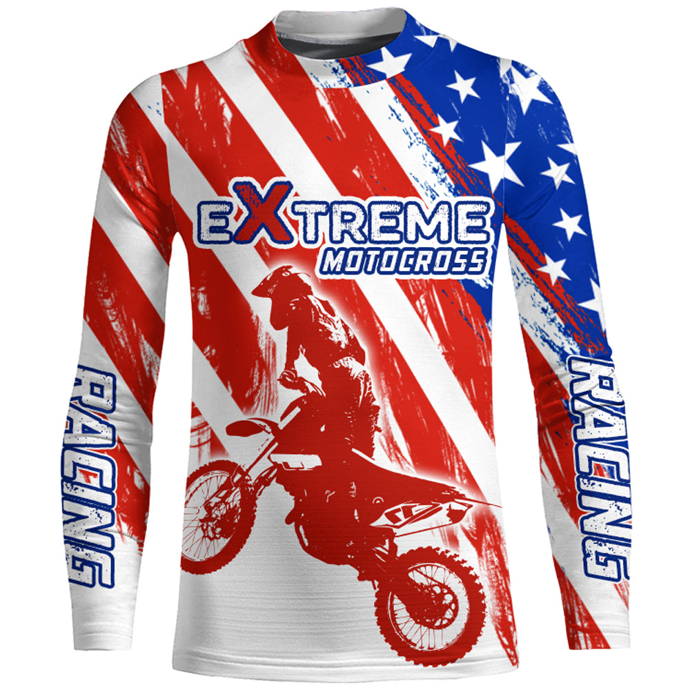 American Flag Motocross Racing Jersey UPF30+ Youth Women Men Kid Dirt Bike Shirt Patriotic XM104