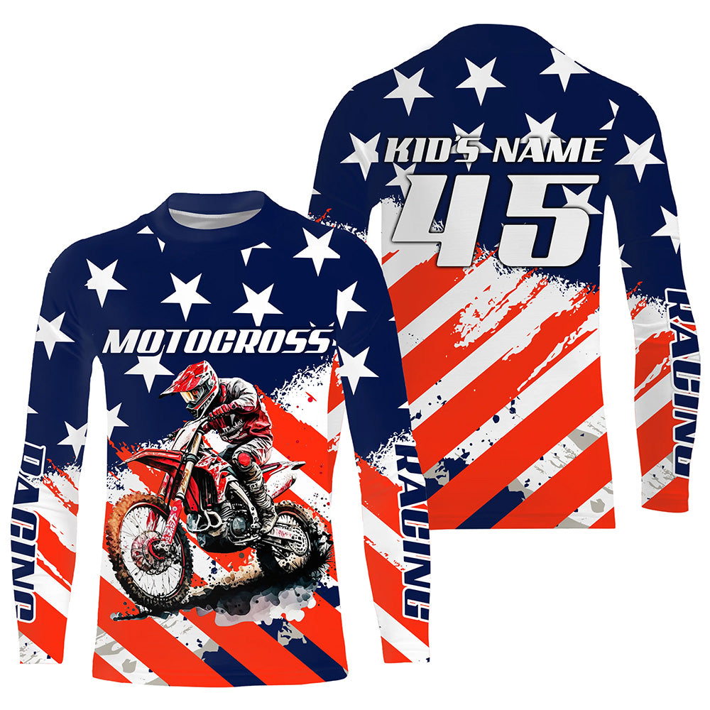 American Flag Racing Jersey UPF30+ Youth Motocross Shirt USA Custom Dirt Bike Shirt Boys Girls Men XM10