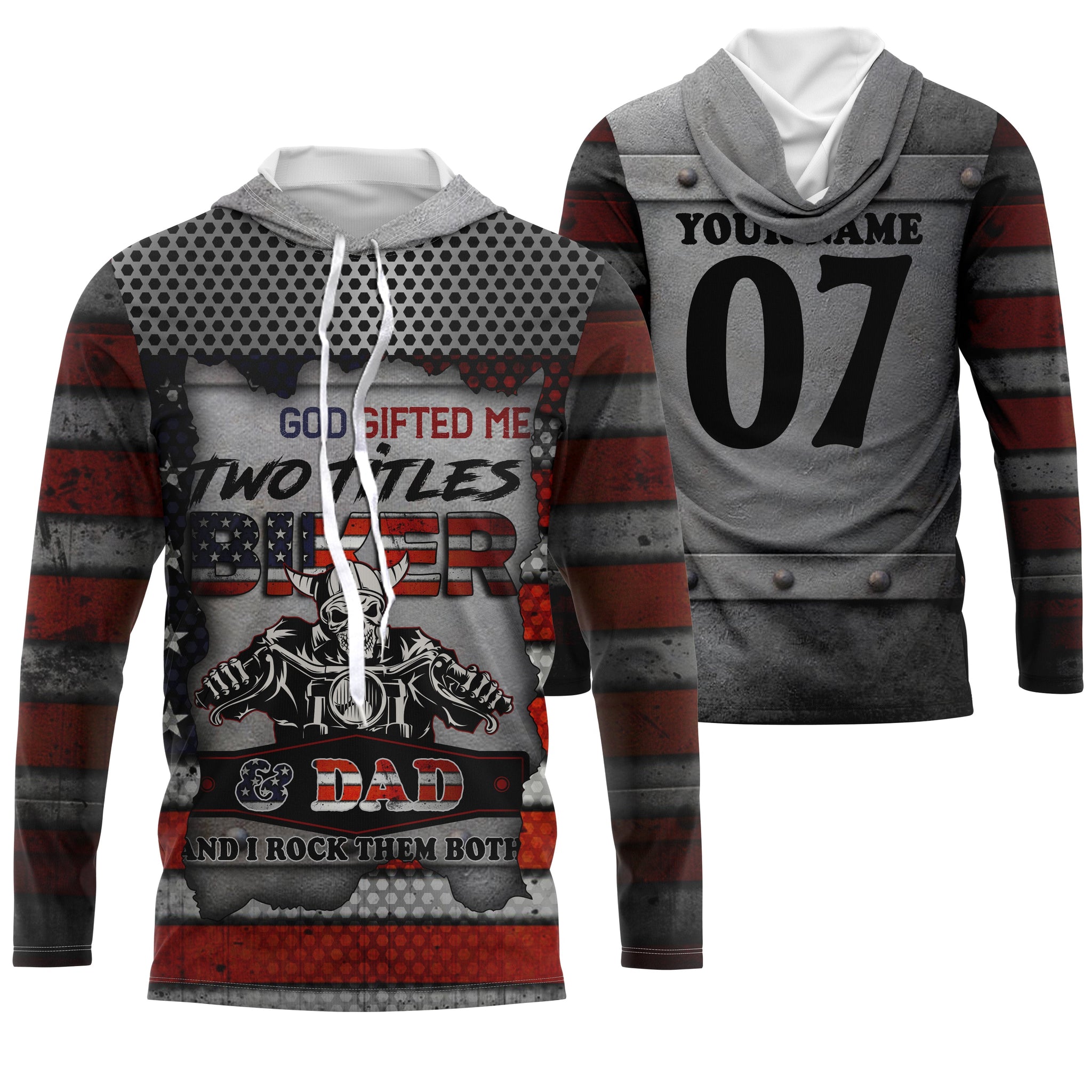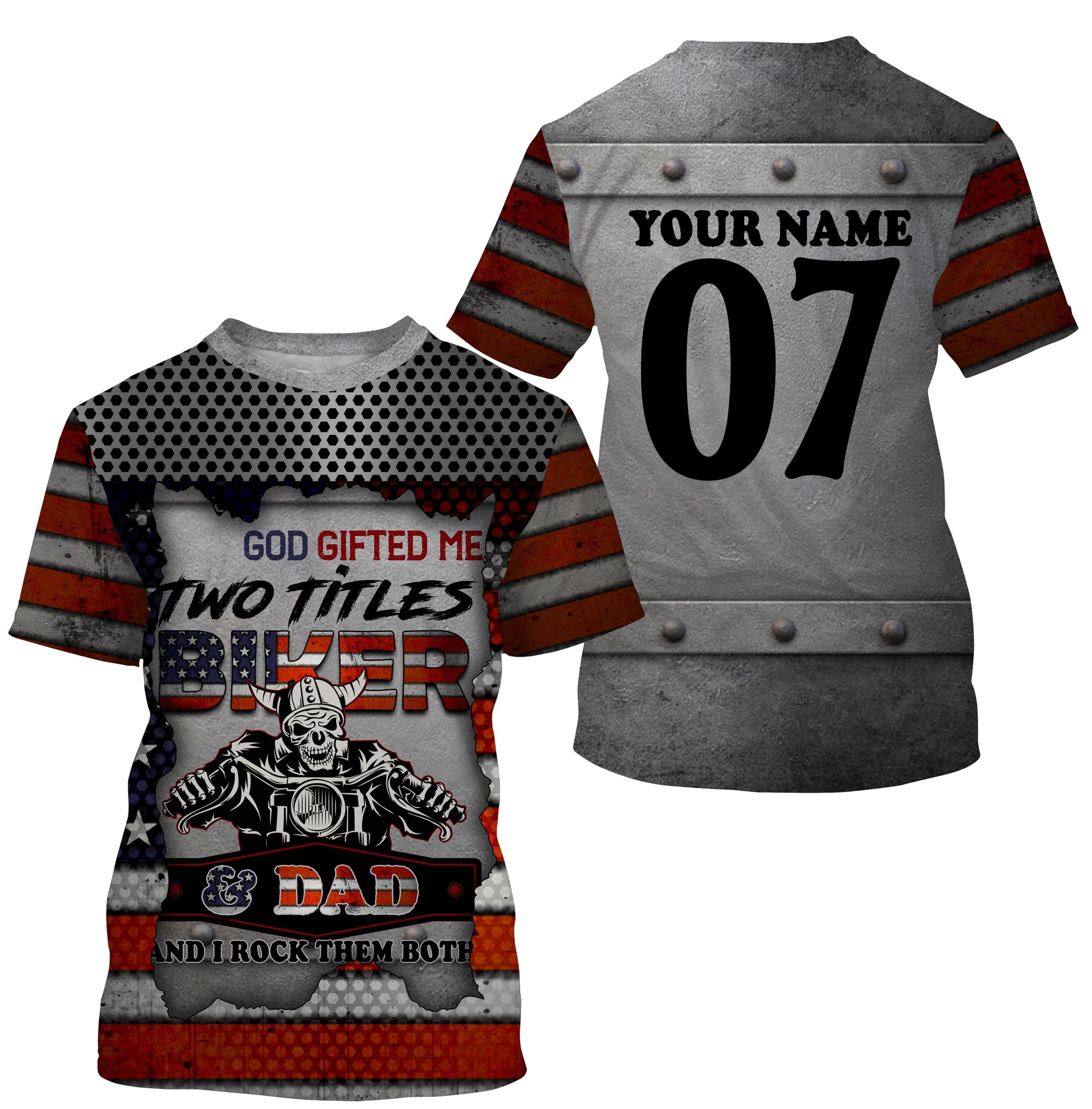 Biker Dad American Flag Riding Jersey Personalized Skull Motorcycle Shirt Father's Day Gift for Riders| NMS520