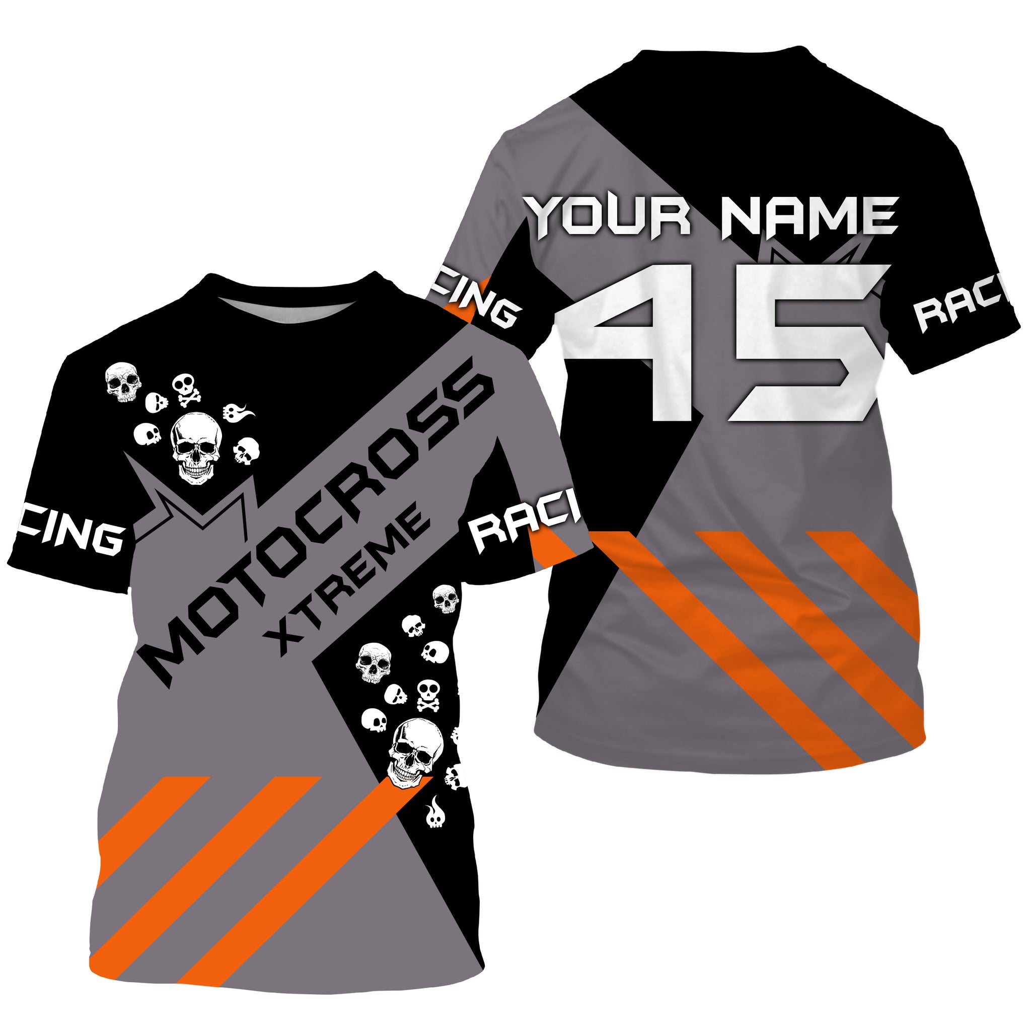 Black Motocross jersey custom name number kids men women UPF30+ dirt bike skull MX shirt offroad PDT148