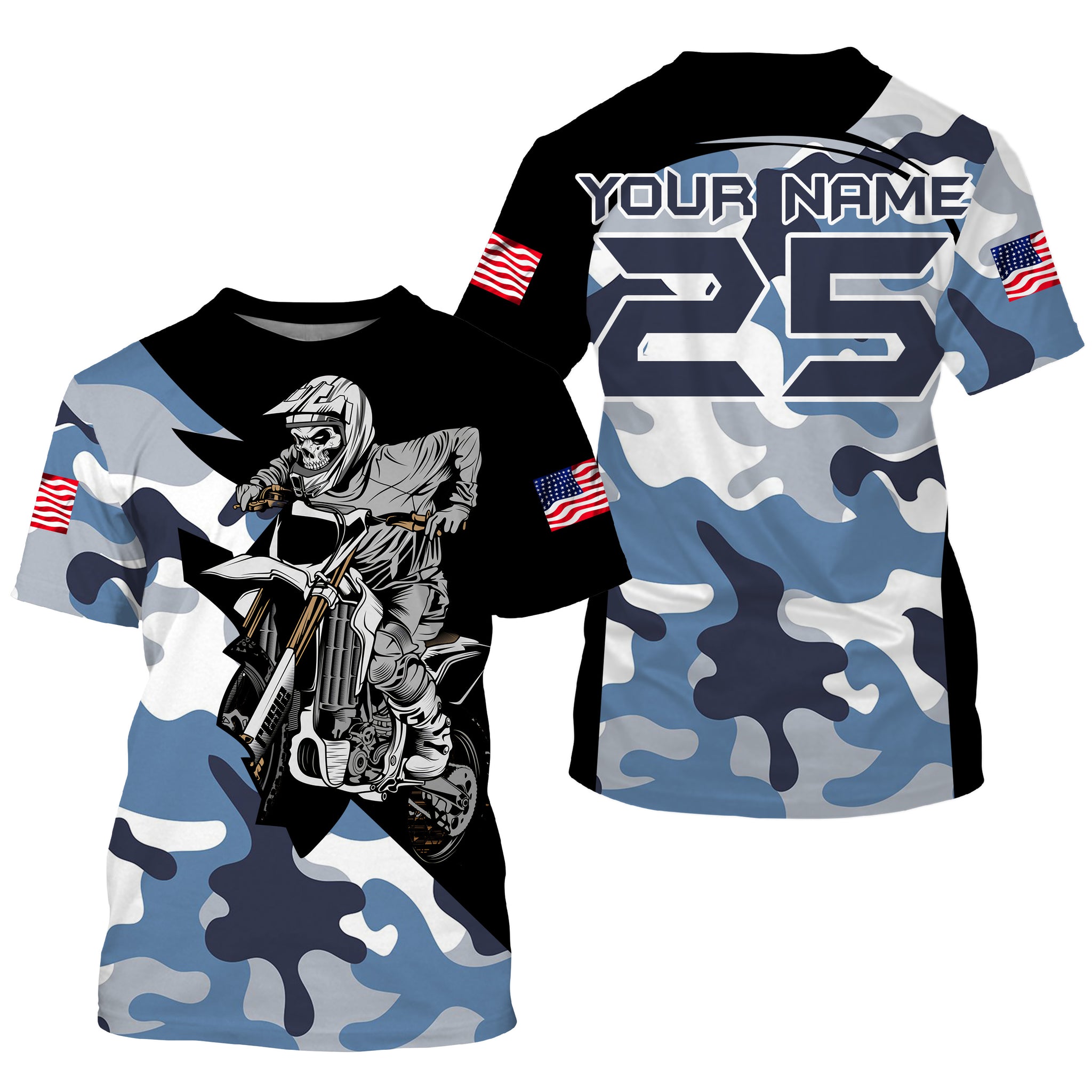 Blue camo custom dirt bike jersey kid&adult UV Motocross racing shirt off-road extreme motorcycle PDT141