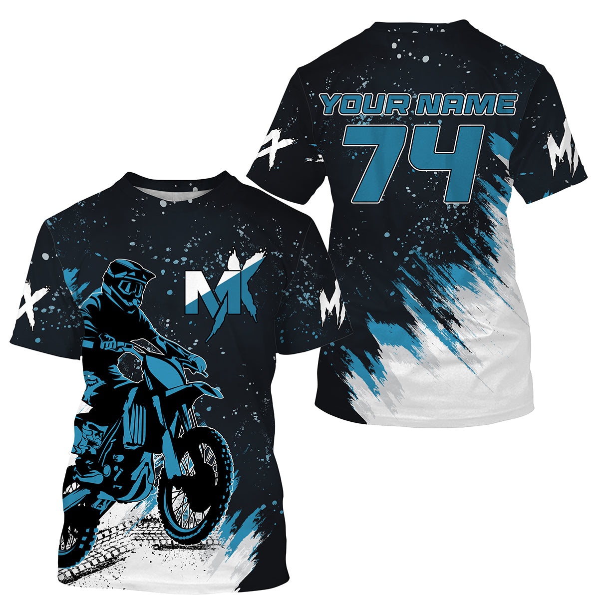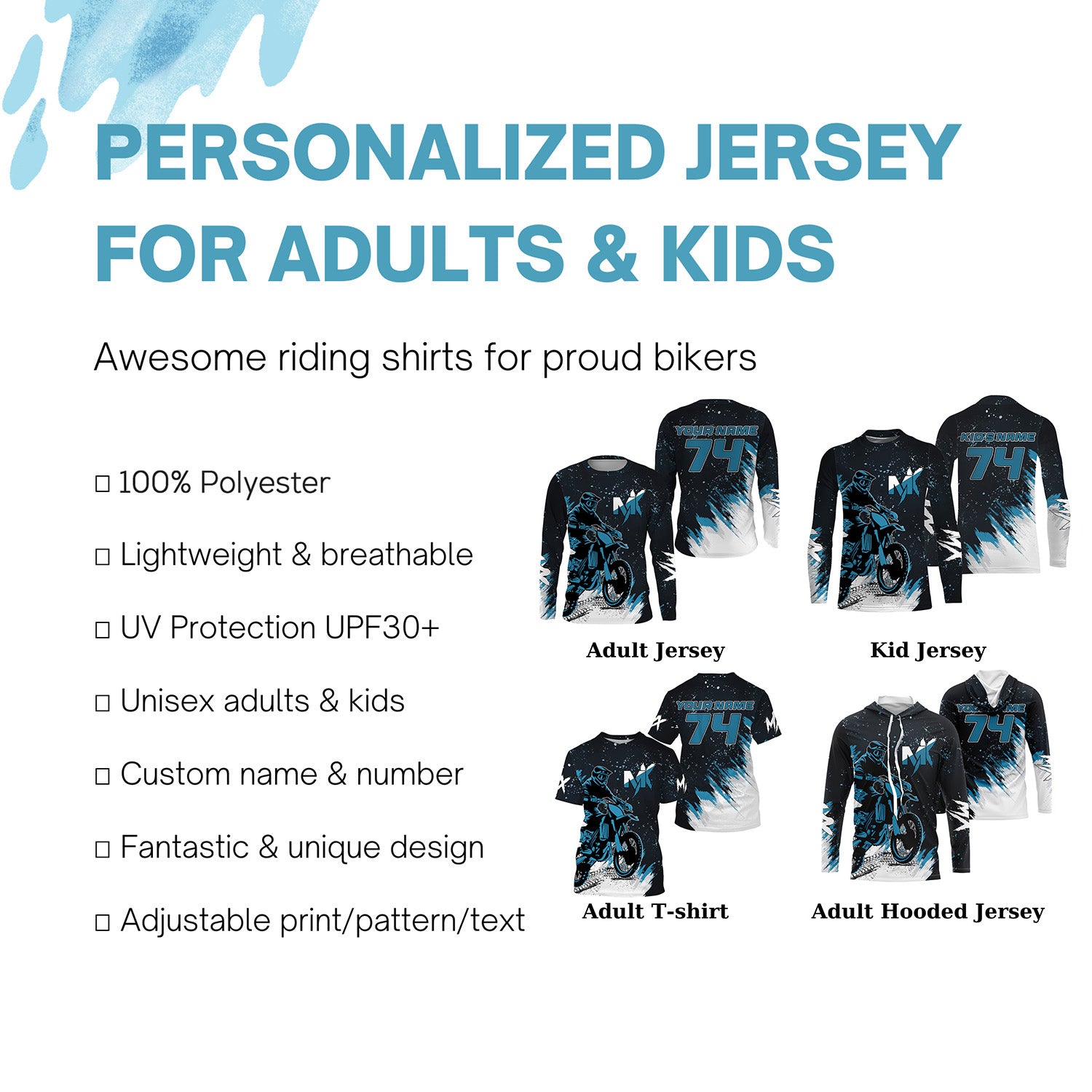 Blue customizable youth MX jersey UPF30+ dirt bike men women kid off-road racing motorcycle shirt PDT59