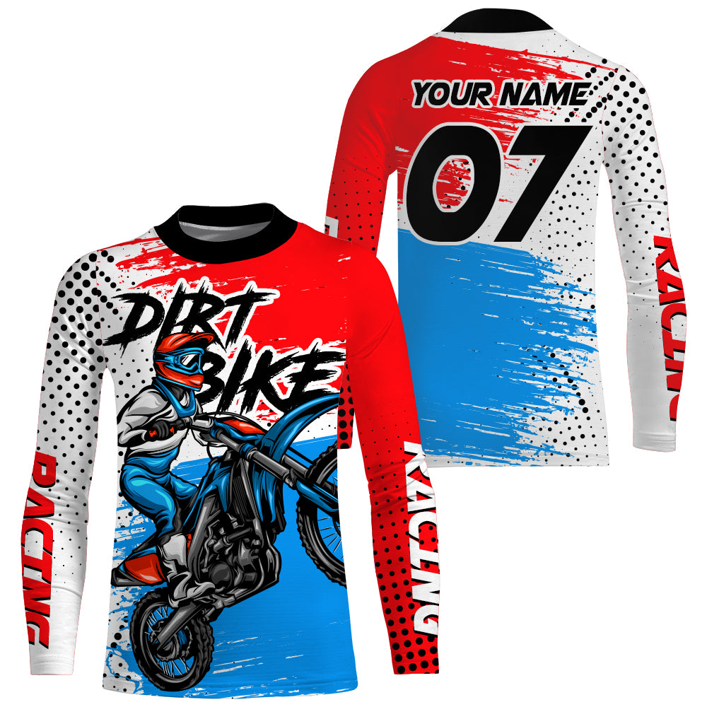 Blue Dirt Bike Jersey Kid Men Women UPF30+ Personalized Long Sleeve Motocross Off-Road MX Shirt PDT478