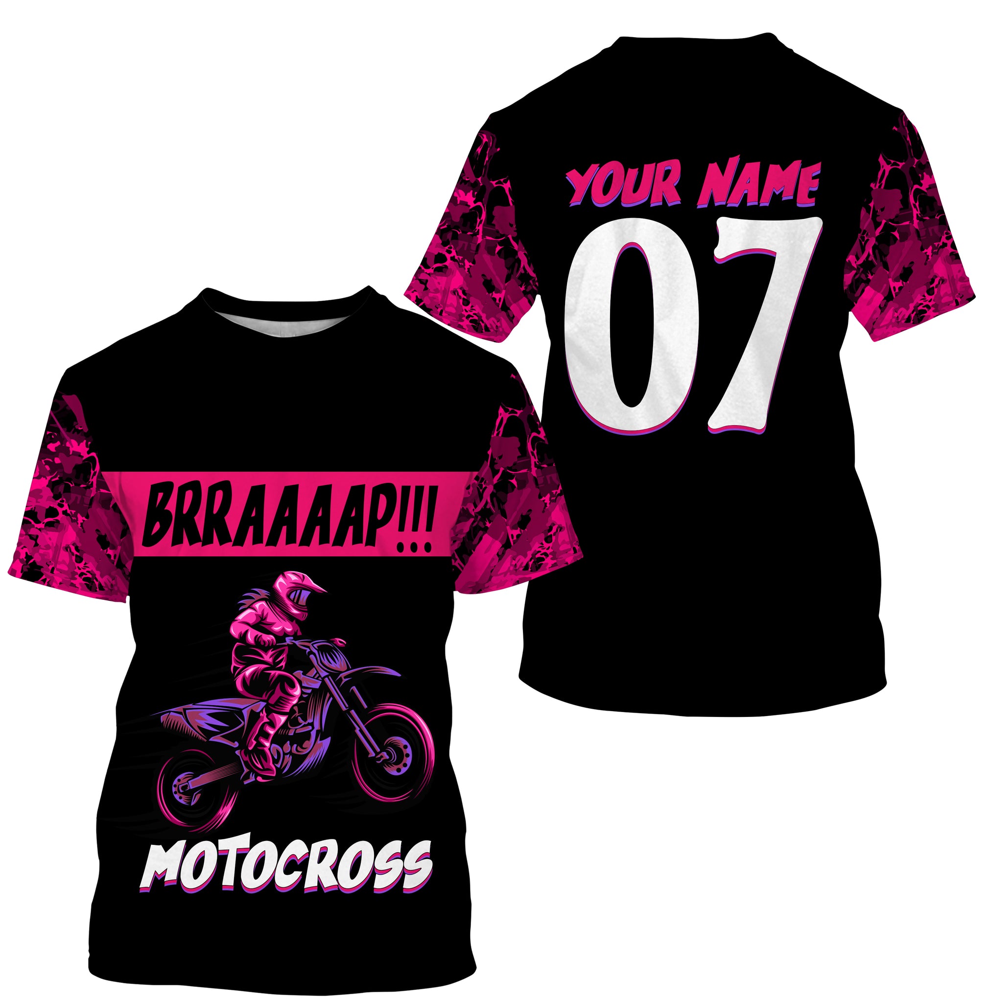 Brap Girl Riding Jersey Personalized Motocross Shirt for Women Female Riders Pink Dirtbike Motorcycle Biker| NMS546