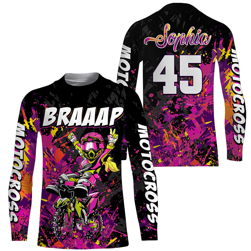 Brap Girl Women Personalized Motocross Jersey UPF30+ Biker MX Racing Off-road Dirt Bike Shirt NMS1266