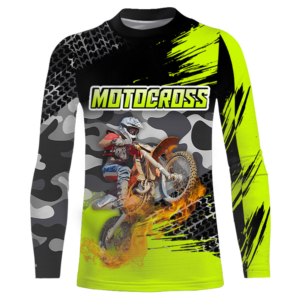 Camo Motocross Racing Jersey Green UPF30+ Youth Dirt Bike Shirt Kid Men Women Off-road Riding Shirt XM128