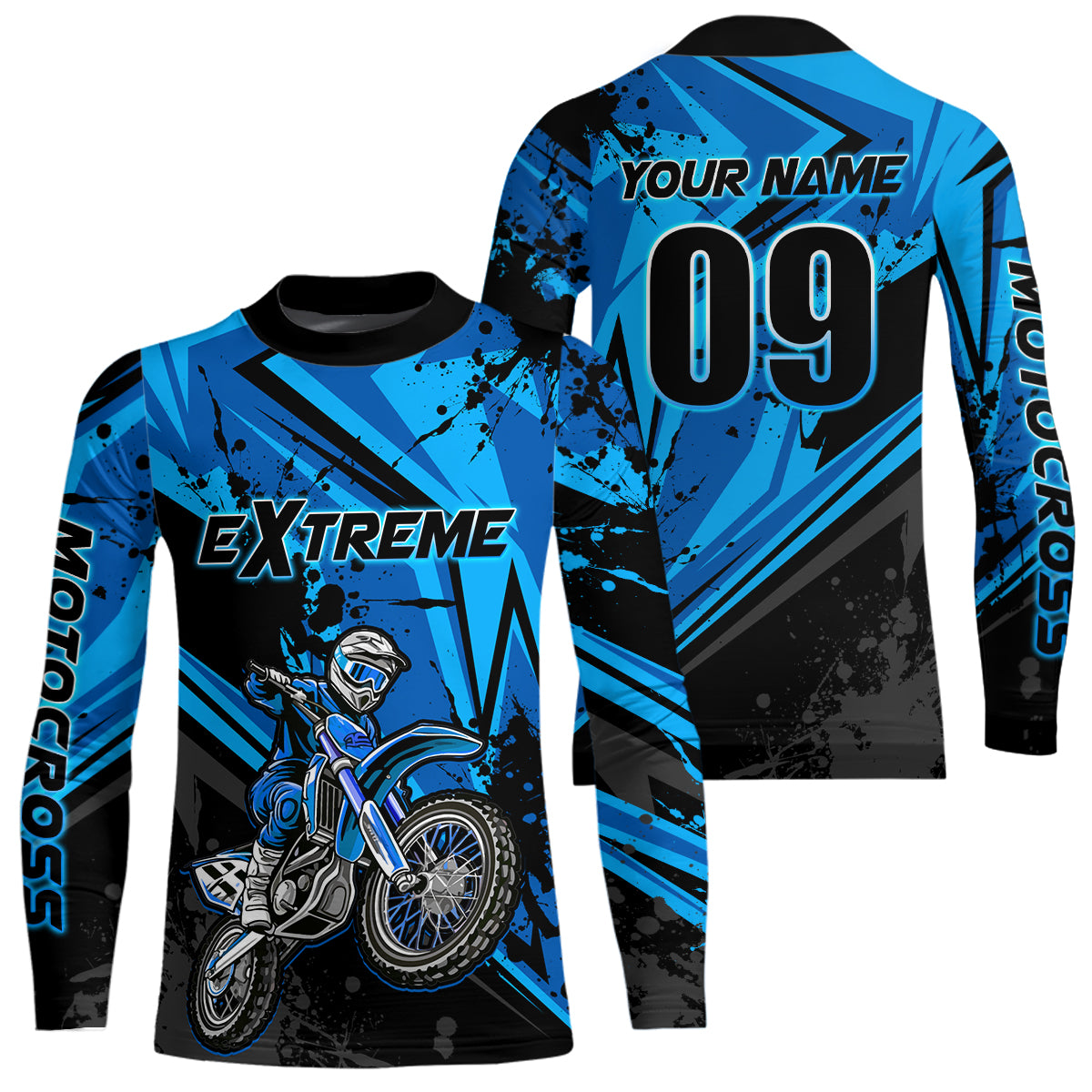 Custom Dirt Bike Jersey Blue Motocross Jersey Upf30+ Mens Women Extreme Racing Shirt| CTP29