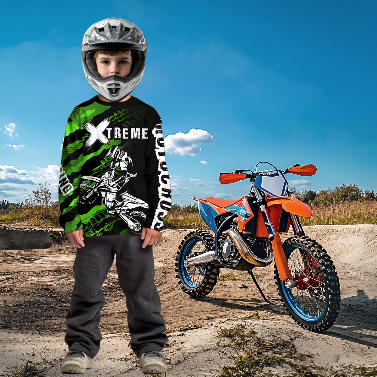 Custom Green Motocross Jersey Racing Shirts UPF30+ Dirt Bike Jersey Kid Men Women DNT09