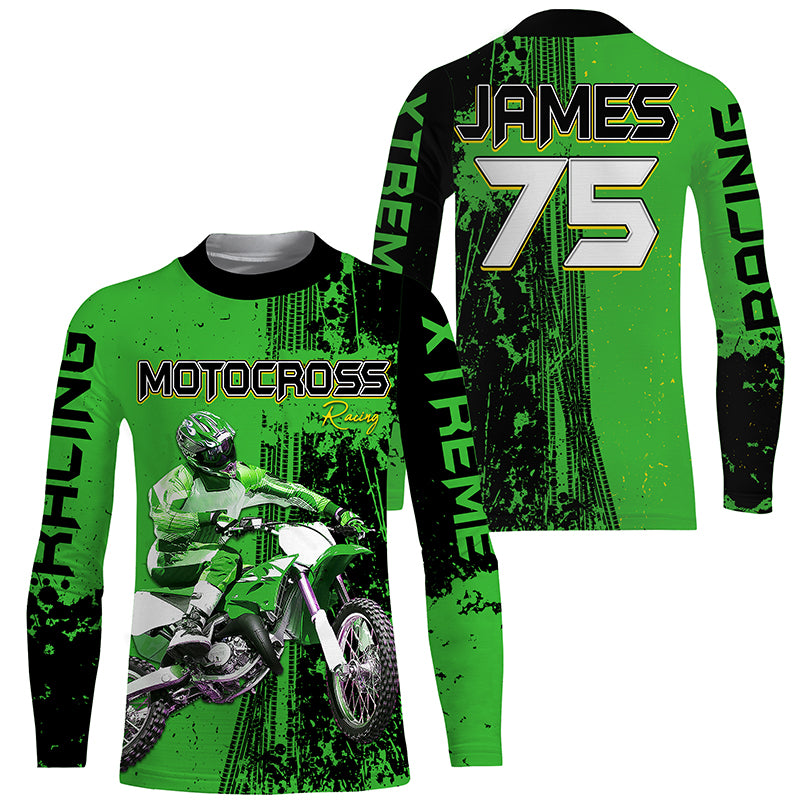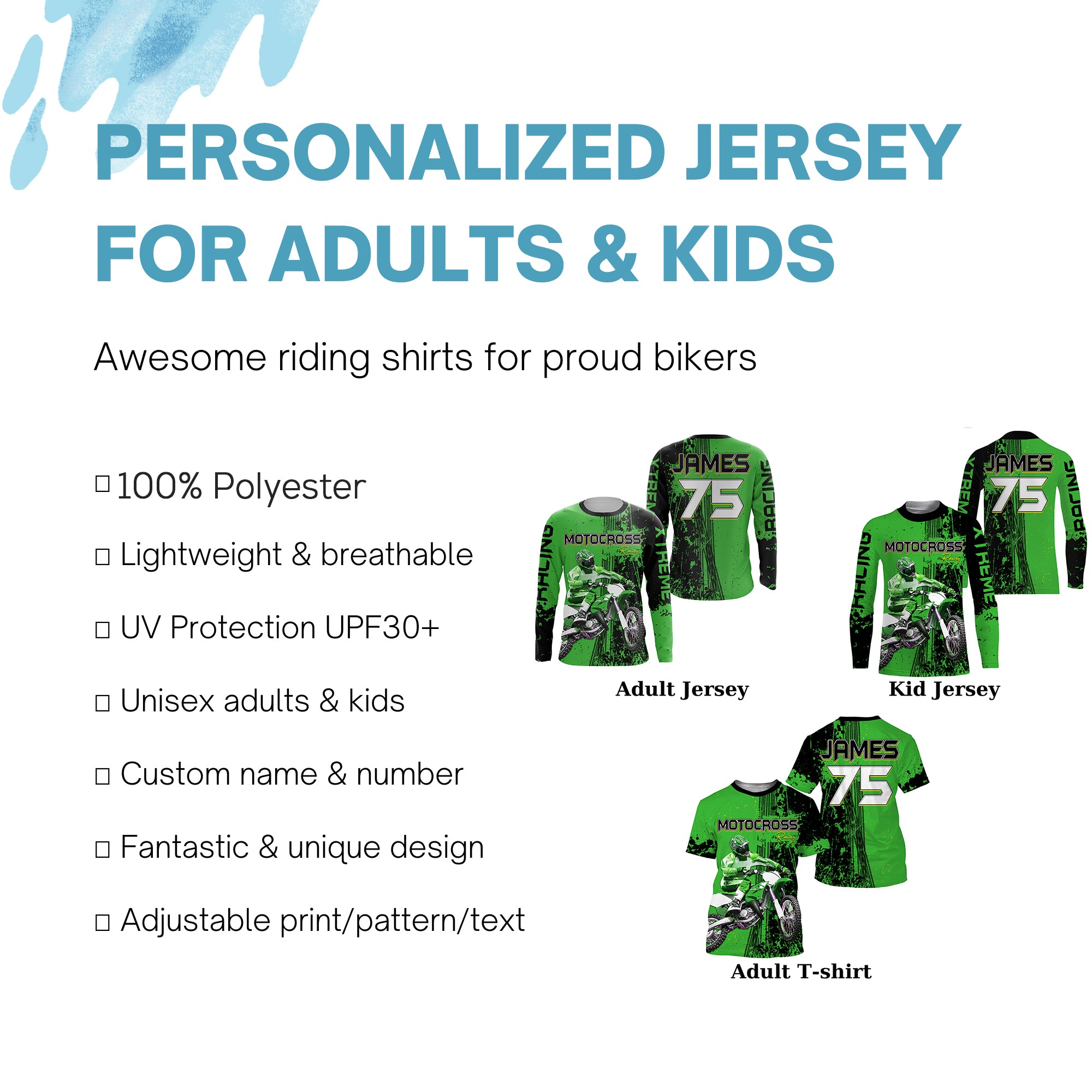 Custom Motocross Jersey Kid Men Women UV Protective Green MX Biker Racing Xtreme Motorcycle Shirt PDT384