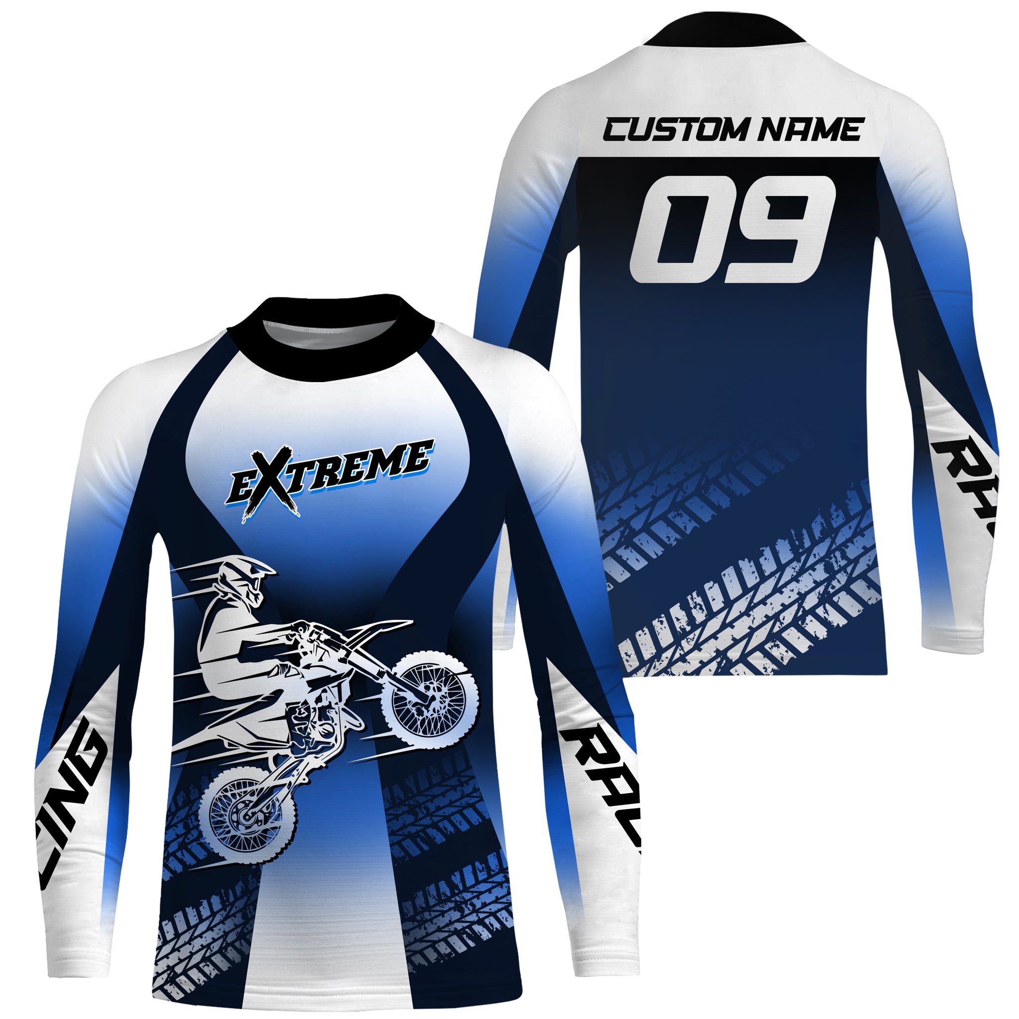 Custom Motocross Jersey UPF30+ Dirt Bike MX Racing Blue Men Women Kid Off-Road Motorcycle Shirt XM115