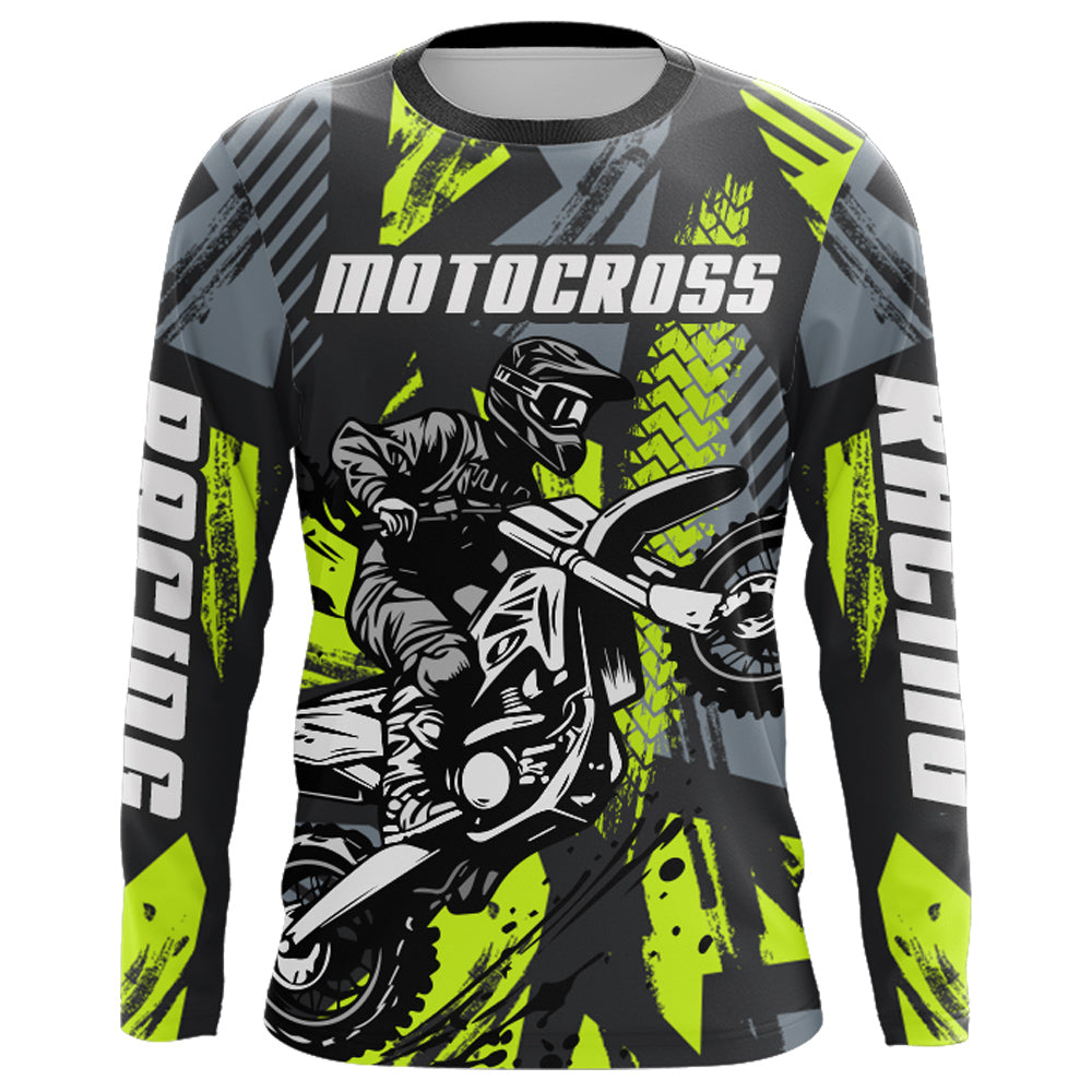 Custom Motocross Racing Jersey Men Kid Dirt Bike Shirt UPF30+ Off-Road Shirt Lime Green XM237