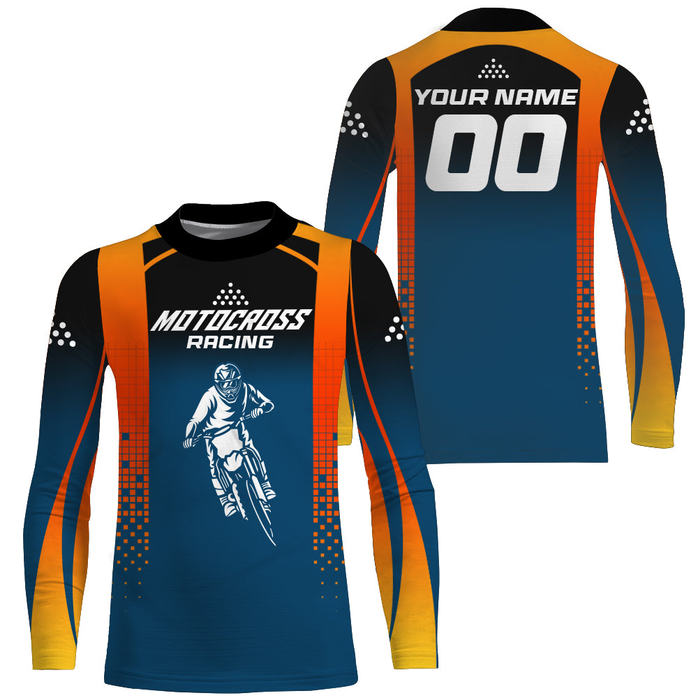 Custom Motocross Racing Jersey Youth Men Women UPF30+ Dirt Bike Shirt Orange Blue MX Off-Road XM46
