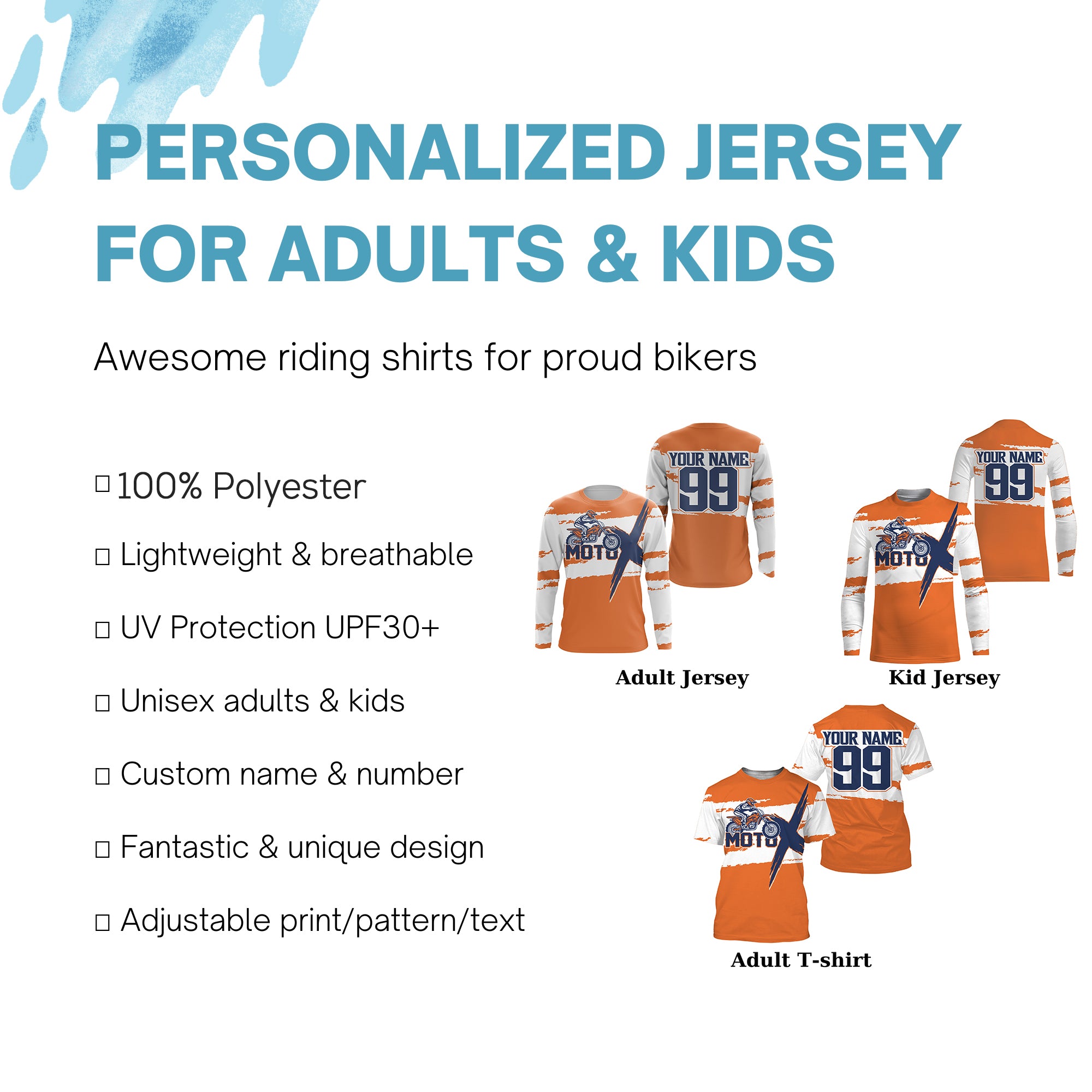Custom name number dirt bike racing jersey orange kids men Motocross off-road UPF30+ MotoX shirt PDT126