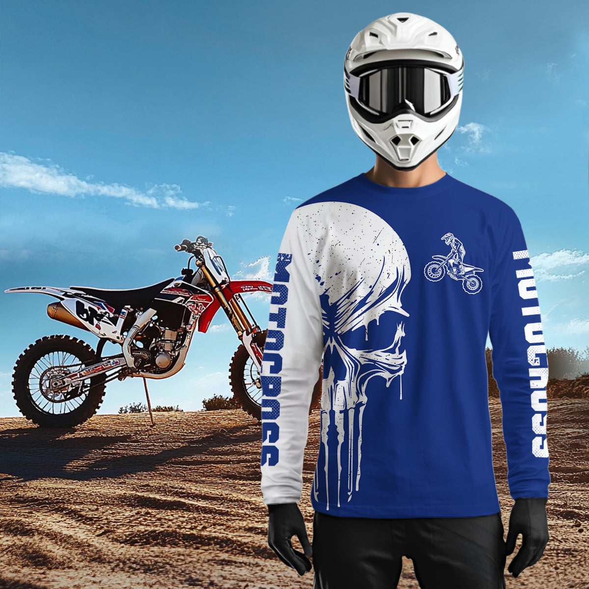Custom Skull Motocross Jersey for Kid Men Women Blue Skull Dirt Bike Racing Shirt XM335