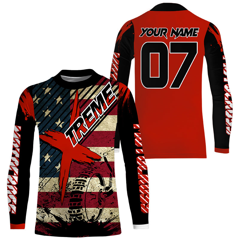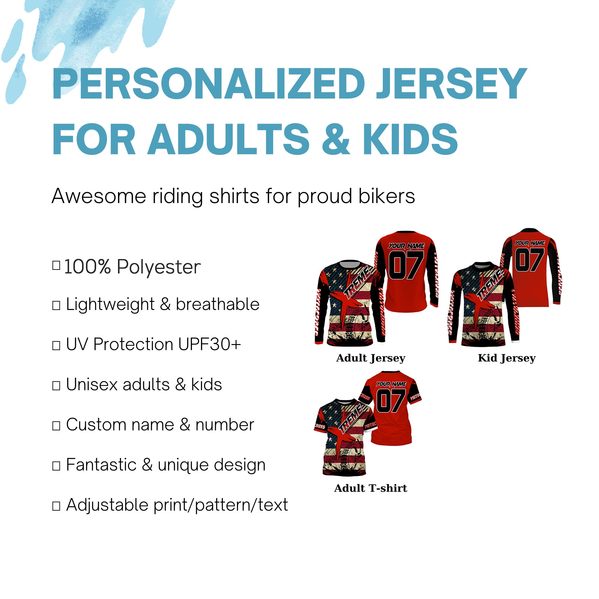 Extreme custom Motocross jersey UPF30+ American flag dirt bike racing kid women men off-road shirt PDT272