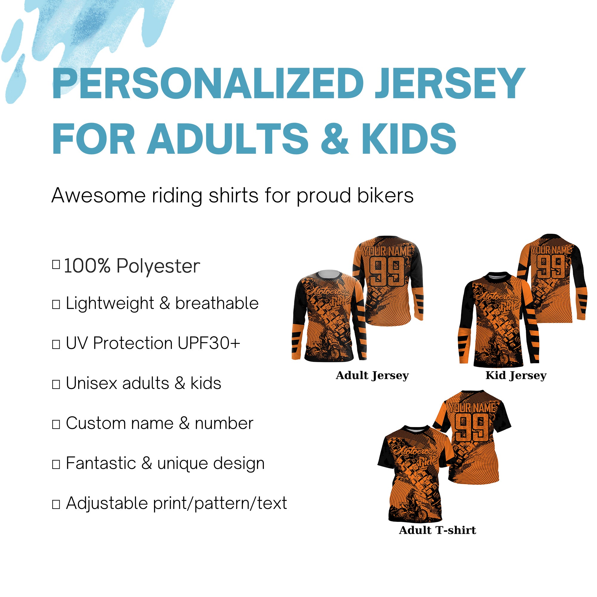 Kids Men custom orange dirt bike jersey Motocross MX racing UPF30+ motorcycle off-road shirt PDT158