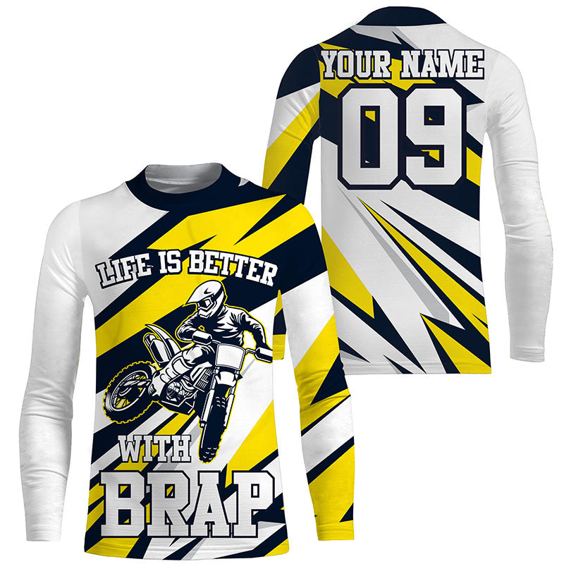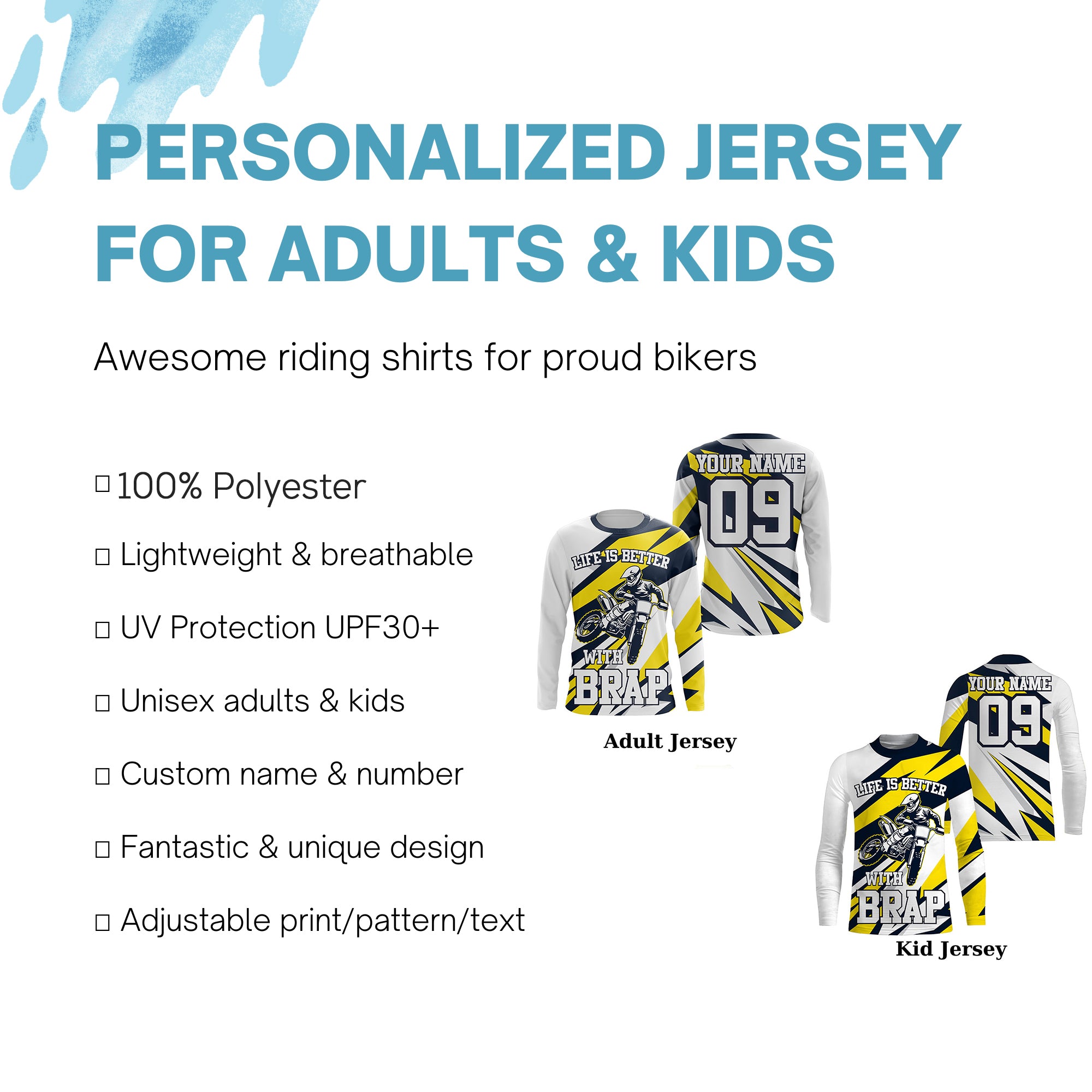 Life Is Better with Brap Personalized Motocross Jersey UPF30+ Kid Adult Dirt Bike MX Racing Shirt NMS1137