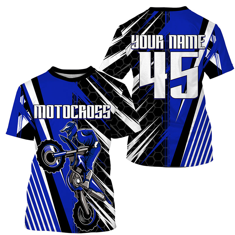 Blue Motocross Men Women Kid Jersey UPF30+ Custom Dirt Bike Off-Road Jersey Extreme Racing Shirt PDT372