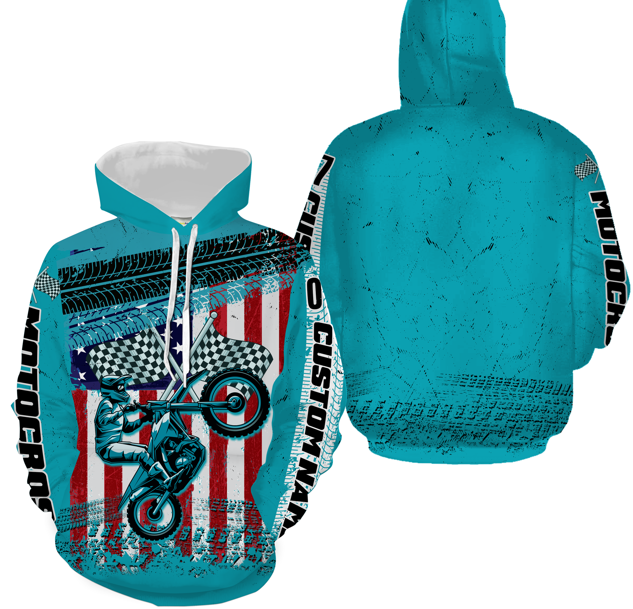 Motocross Racing American Flag Over Printed Hoodie, Long Sleeves, Custom MotoX Dirt Bike Shirt| NMS272