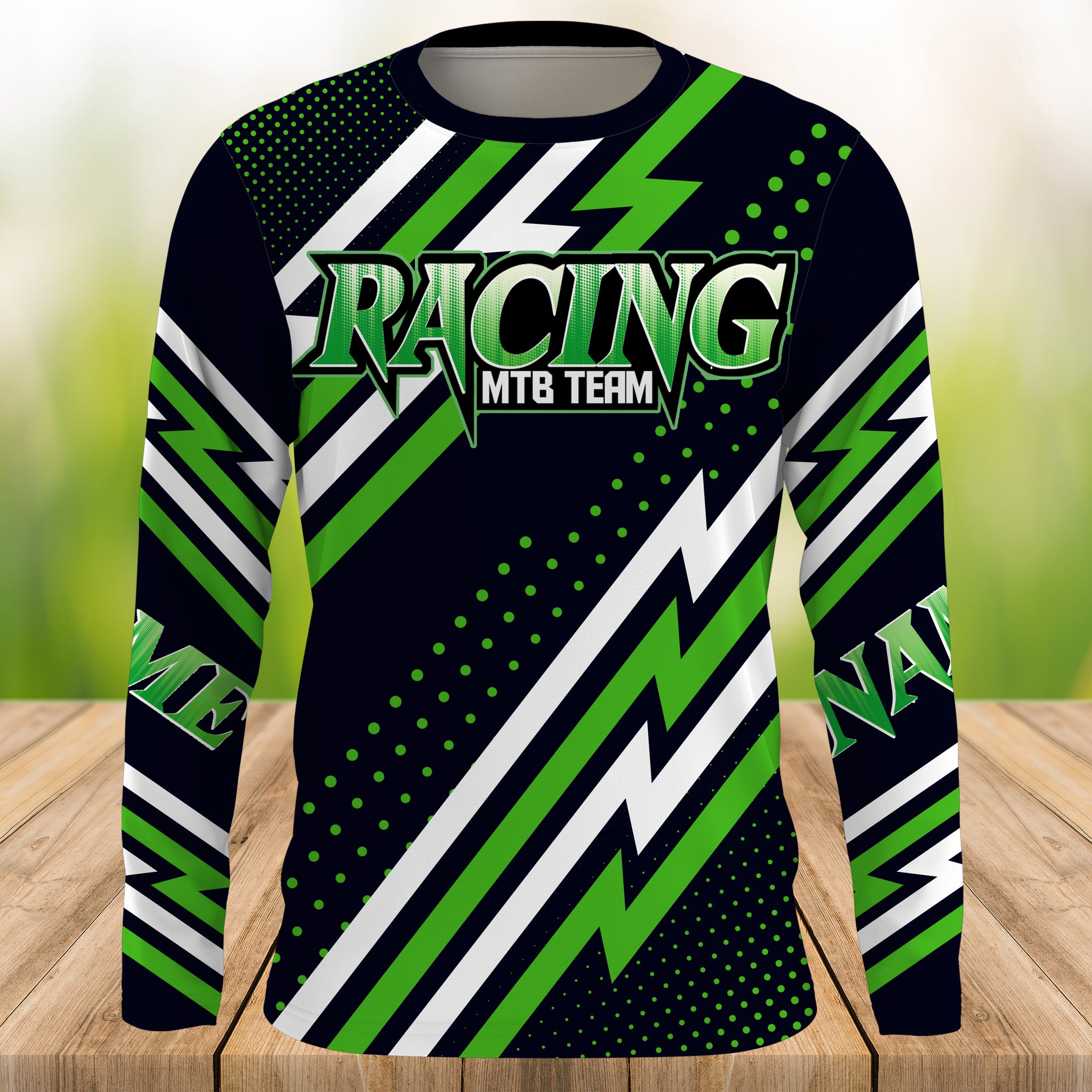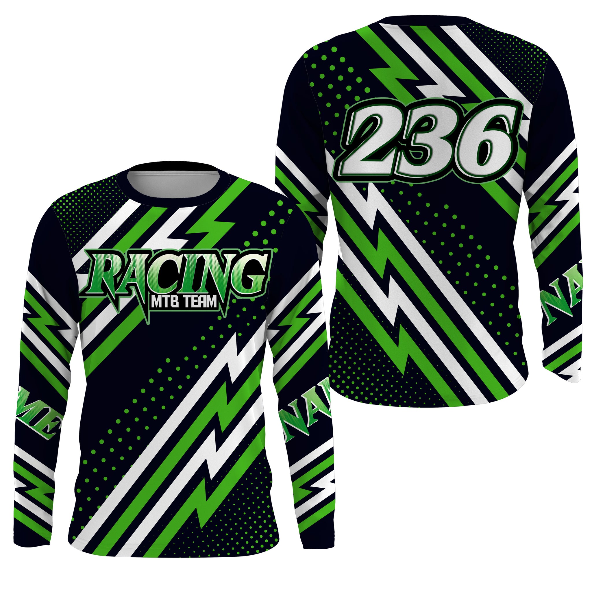 MTB Jersey, Custom Green Downhill Mountain Bike Racing Shirt, Cycling Shirt UV Protection UPF 30+| JTS495