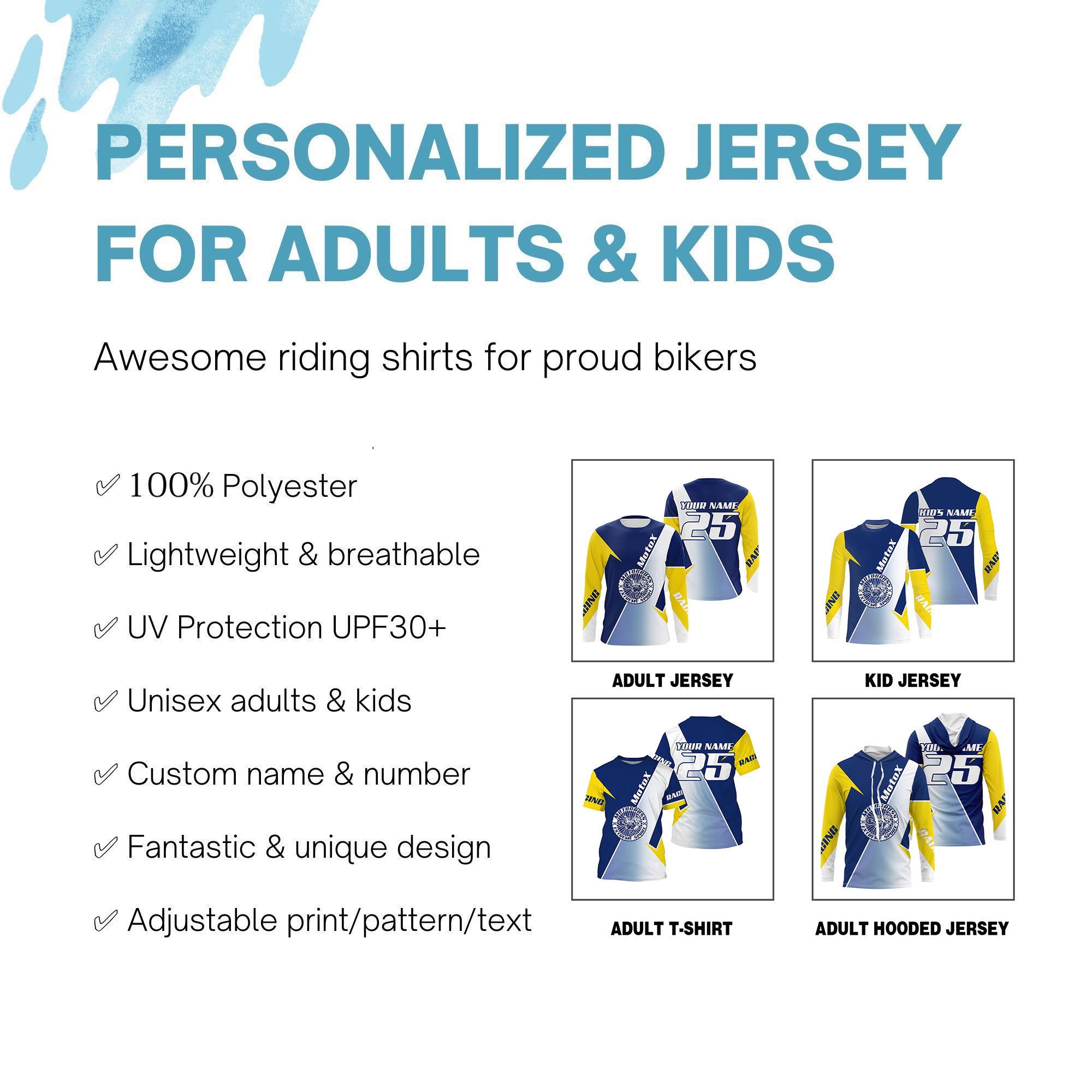 - PERSONALIZED RIDING JERSEY: This super cool shirt is exactly what all bikers are looking for. Add your name/number to make it a unique one that bears your own imprints.